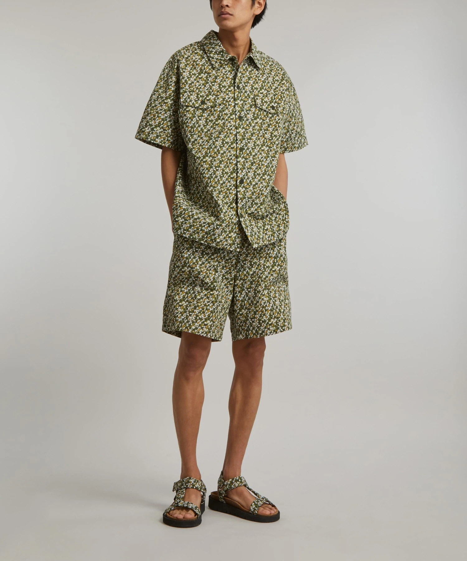 The Chris Camo shirt from A.P.C. is part of an exclusive collaboration which sees the Parisian basics brand fuse their signature, contemporary-cool cuts with Liberty’s heritage prints. Crafted from Tana Lawn™ Cotton in an abstract khaki Camo print, this relaxed short-sleeve shirt has a classic collar and two flap-pockets. Simply pair it with the matching Barry shorts.
