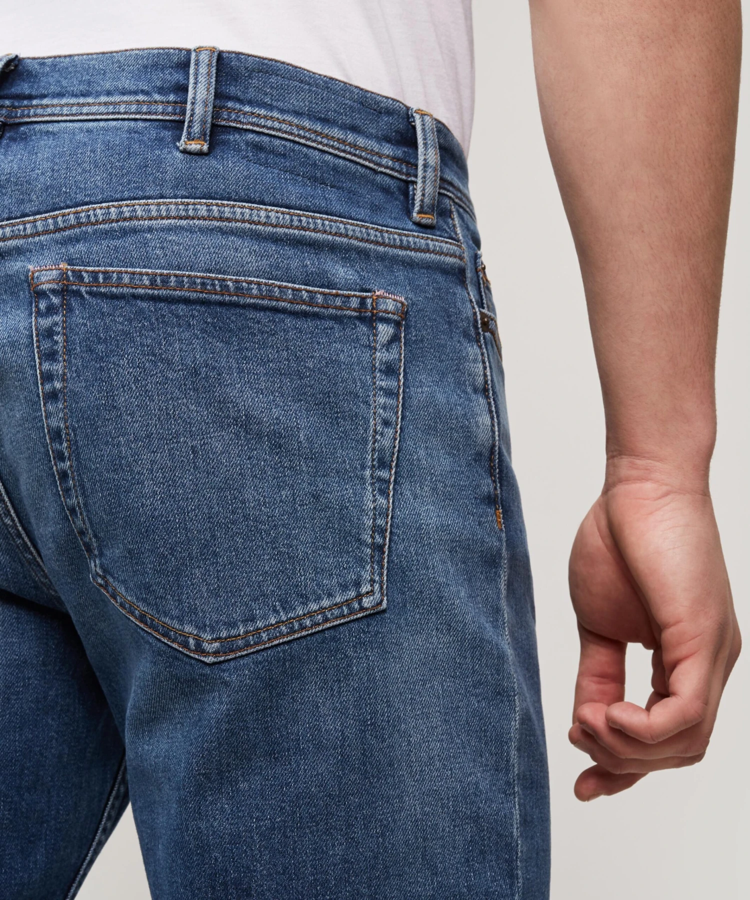 With over twenty years at the forefront of Scandinavian fashion, Acne Studios continue to lead the way when it comes to fresh concepts and innovative style. The North Dark Blue jeans fit to a slim style, using a stretch cotton for optimal comfort. Wear these jeans with a coveted vintage t-shirt and light outerwear piece for an easy weekend look.
