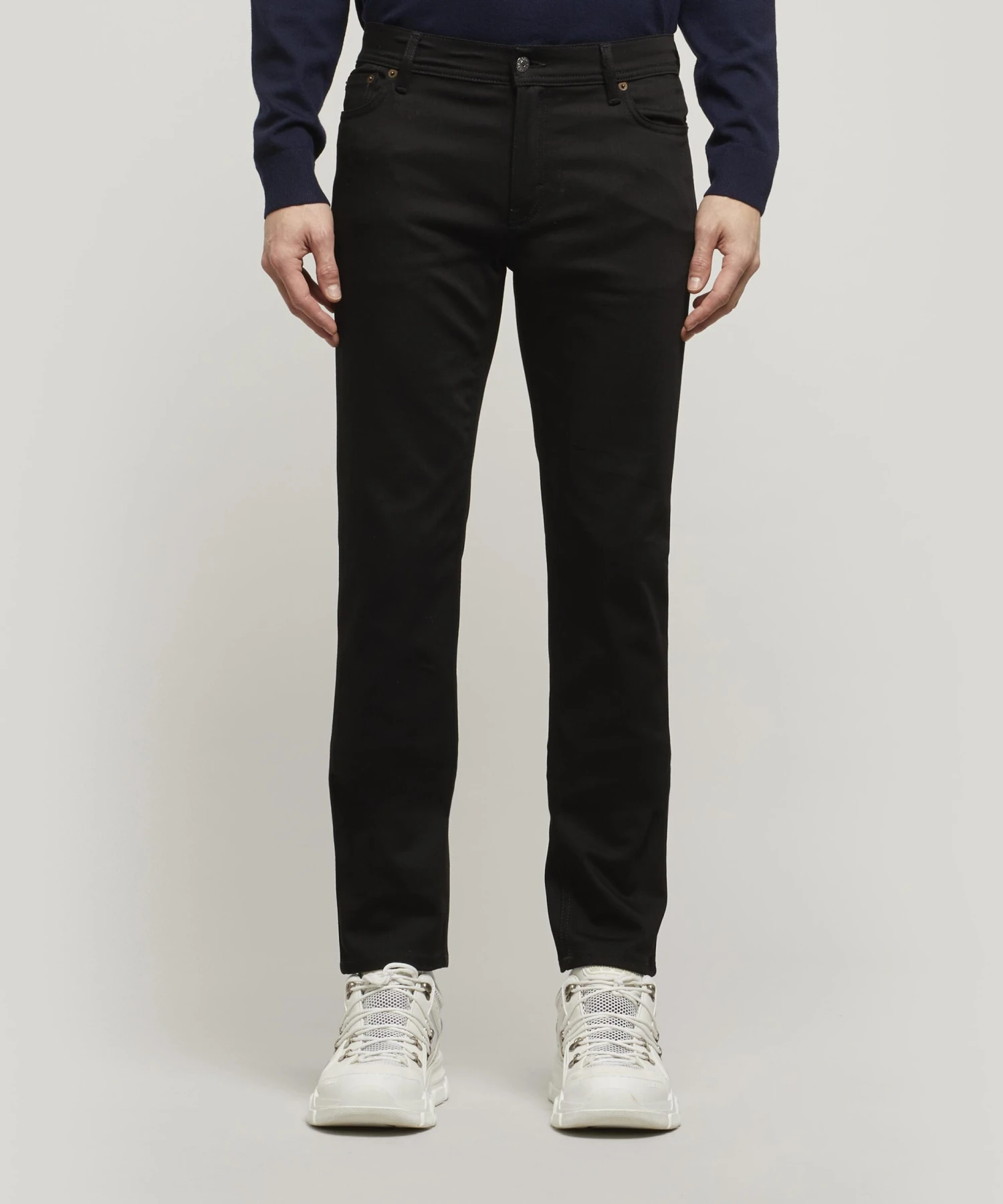 With over twenty years of leading the way in Scandinavian design, Acne Studios continues to push fresh concepts and forward-thinking styles with its new ‘Blå Konst’ line. Drawing on the denim roots the label found fame with, Acne Studios bring us the North Stay Jeans. Cut for a slim fit, they are made in Italy and uphold the quality that has won Acne Studios cult-like veneration from fans. This classic five pocket, zipper-fly style is ideally paired with one of the label’s thick cotton t-shirts – why not pull on one of its signature Face Patch beanies and revel in the luxurious minimalism of Nordic style.