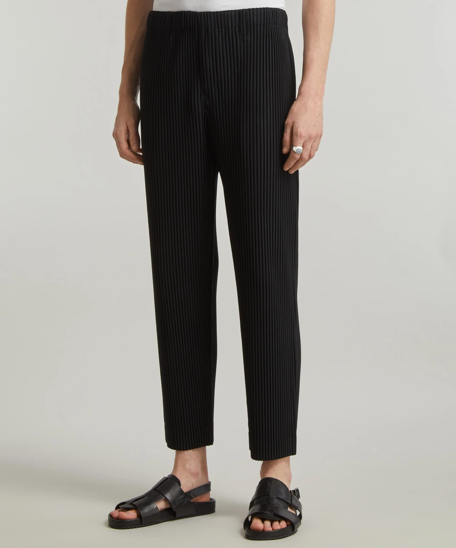 An essential addition to every contemporary wardrobe, the Basic Trousers from HOMME PLISSÉ elegantly showcase the radical pleating techniques Issey Miyake has been famed for since the eighties. Cut for a relaxed, straight-fit with side-slip pockets, they’re fitted with an elasticated waistband for ultimate ease and comfort and an effortlessly cool ankle length hem – pair with the matching Basic Pleated Jacket for ultimate impact.