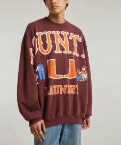 The Big Kountry sweatshirt from cult Japanese label KAPITAL fuses Japanese and American influences. Crafted in Japan from a comfortable cotton jersey for an oversized fit with dropped shoulders and slouchy shoulders, it’s emblazoned with a collegiate-inspired ‘Laundry’ insignia graphic across its chest for a vintage finish.