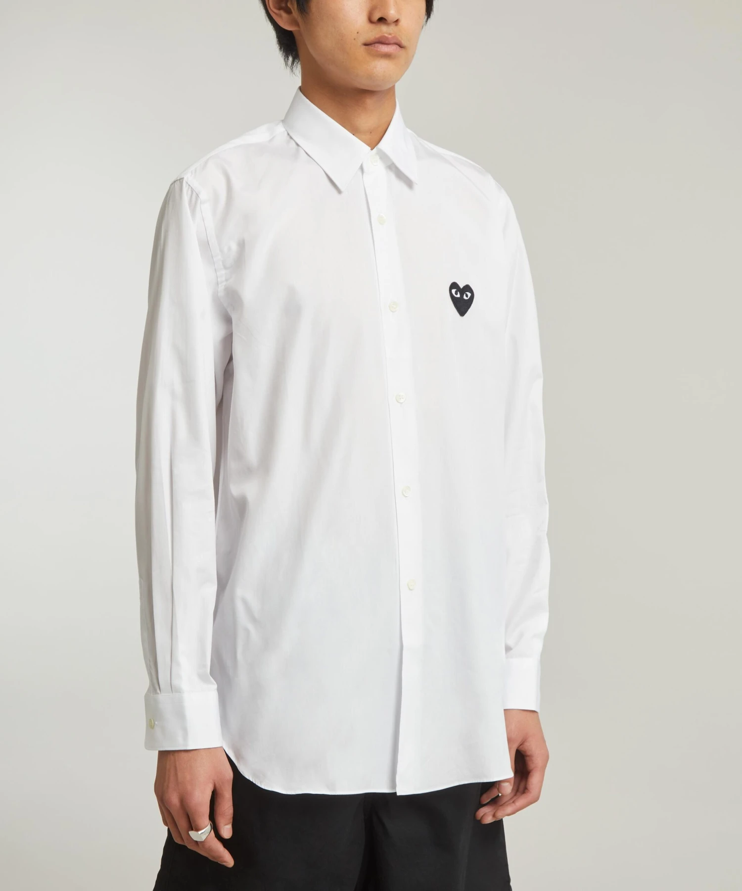 Comme des Garçons PLAY’s instantly recognisable heart logo adorns this classic white shirt. Cut from cotton with a classic point collar, buttoned closure and long, cuffed sleeves, it’s finished with the iconic heart logo appliquéd in black at the chest.