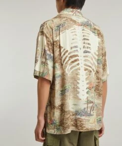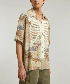 Designed with a modern, streetwear aesthetic, the Bone Wrangle Aloha Hawaiian shirt from cult Japanese label KAPITAL is a quirky addition to your casual edit. Crafted from rayon featuring a tropical landscape print, this classic Hawaiian-style shirt has an oversized Cuban collar, short sleeves and a signature bone design emblazoned across its front, back and sleeves.