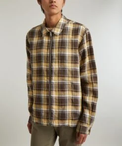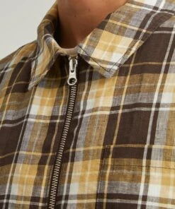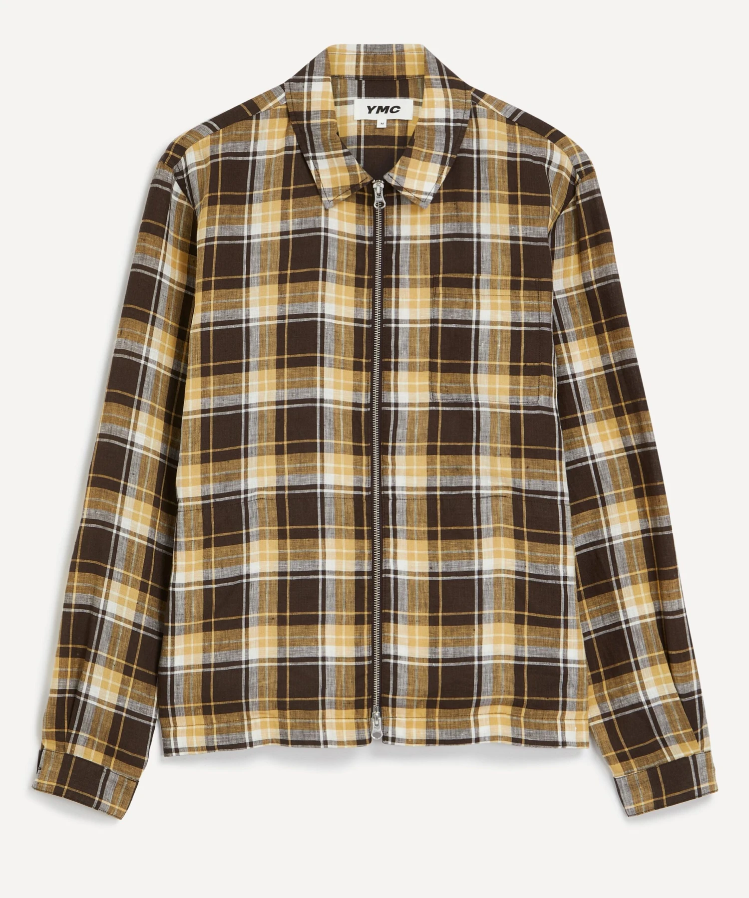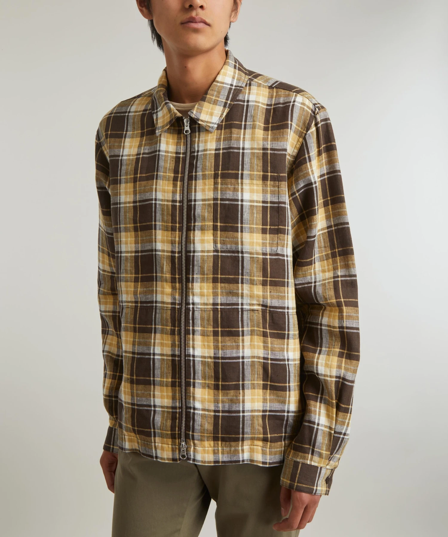 A signature style updated for the new season in a brown plaid pattern, it’s crafted from lightweight linen for a boxy fit complete with a YKK zip front fastening, and a single patch pocket at the chest.