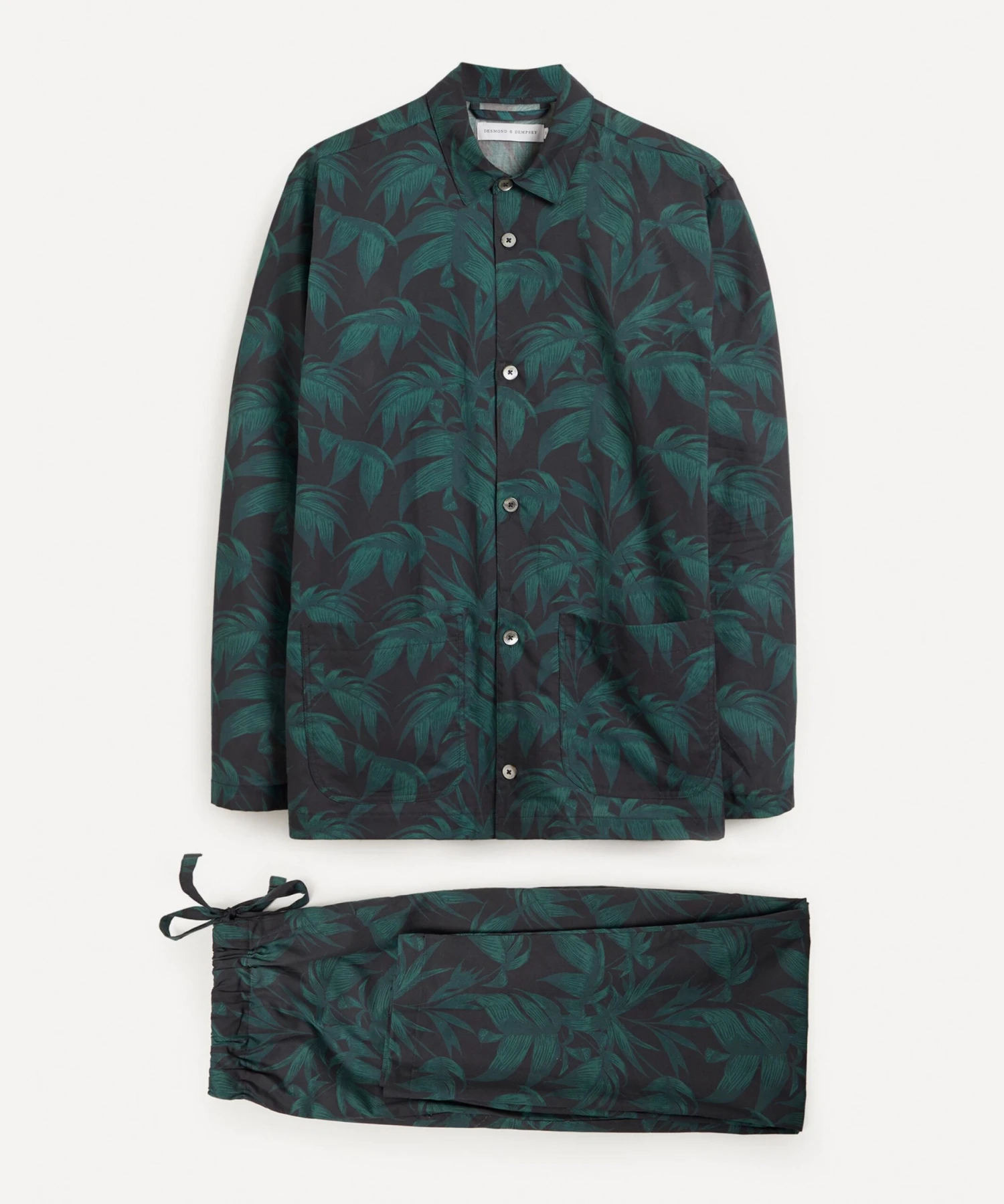 Come evening, add a jungle-inspired twist to nightwear and drape yourself in Desmond & Dempsey’s printed cotton pyjamas.