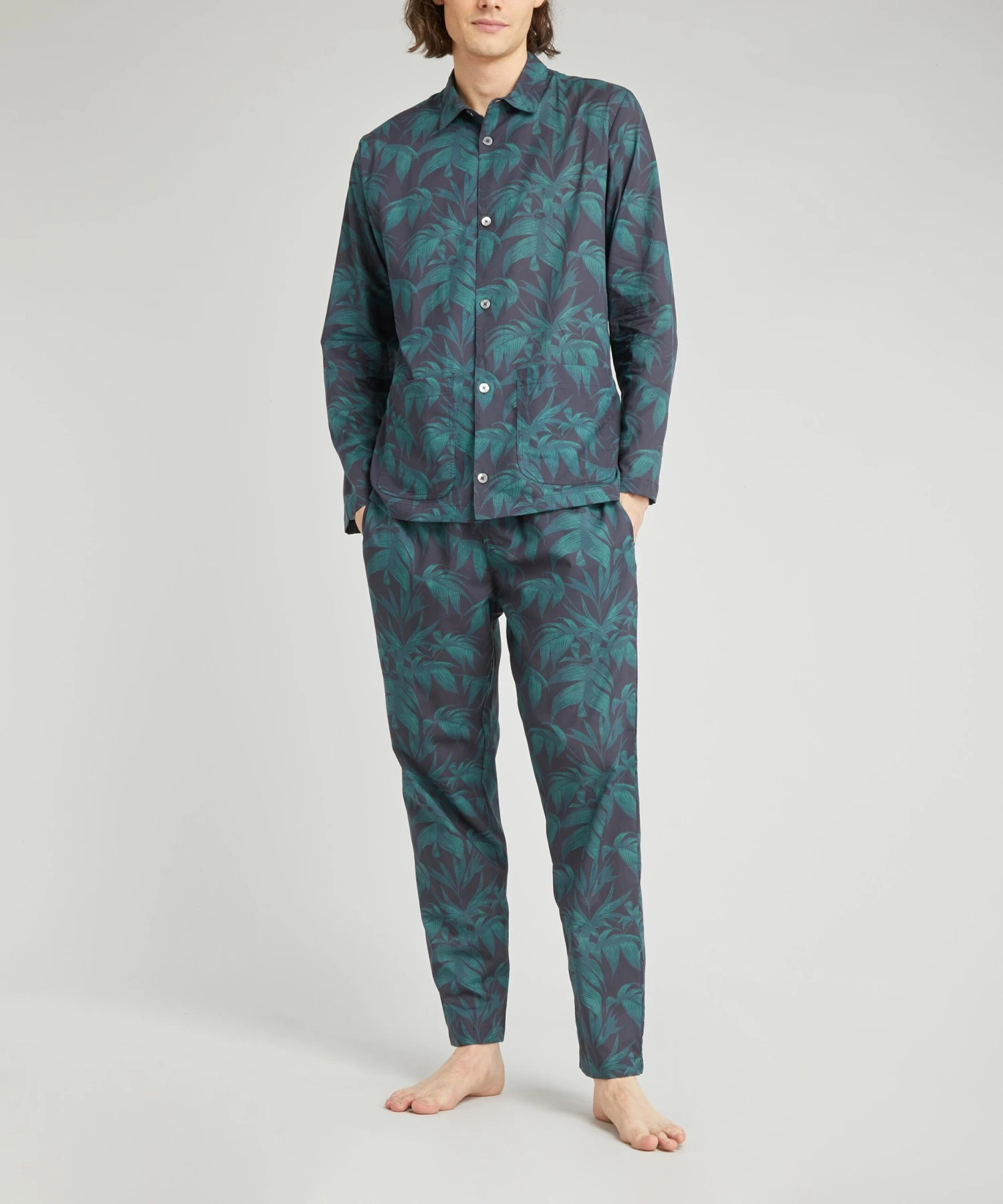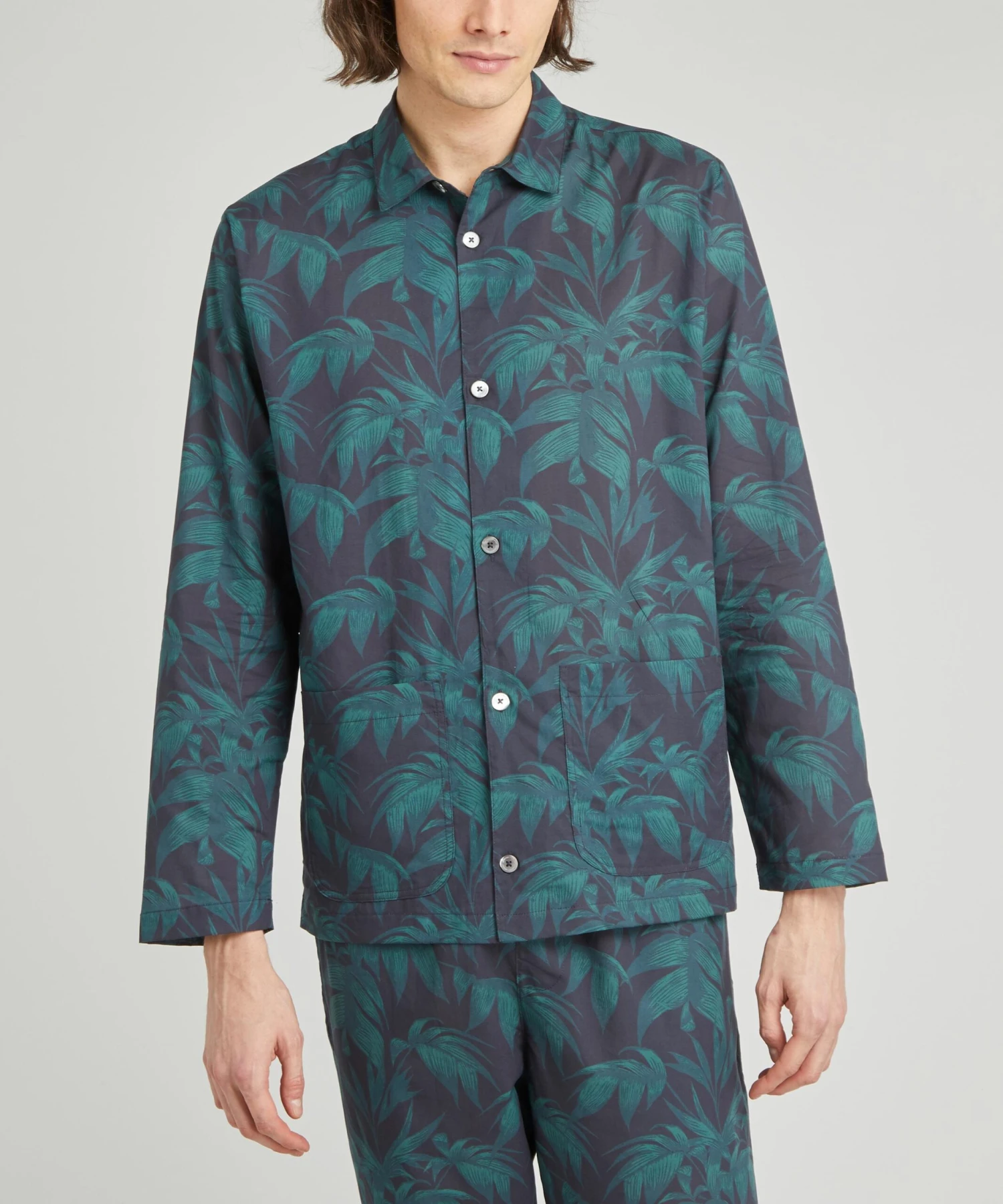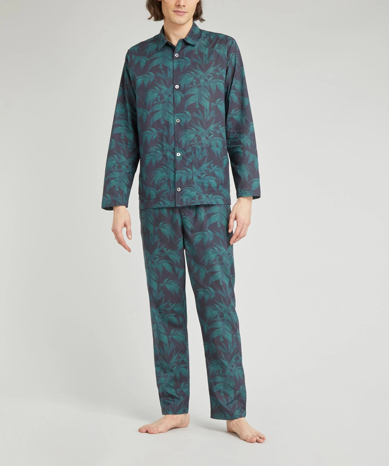 Oozing with botanical panache, this pyjama set is crafted from luxuriously woven premium cotton for a flawless finish and durable, long-lasting wear. With long sleeves and pearlescent buttons, this shirt can be worn for a restful slumber or out on the town for an urbanely cool aesthetic. Perfect for lazy days on the sofa when paired with the coordinating trousers, you’ll pull this cosy set out year upon year.