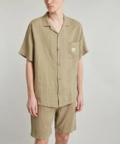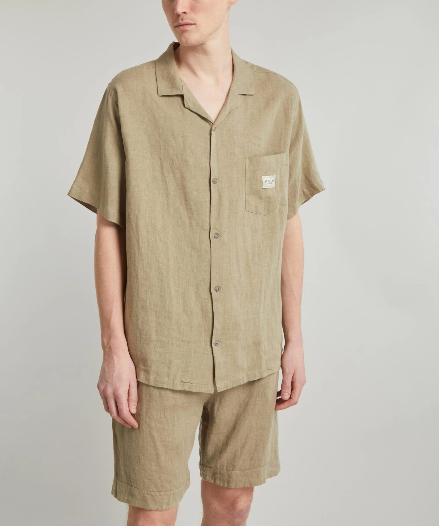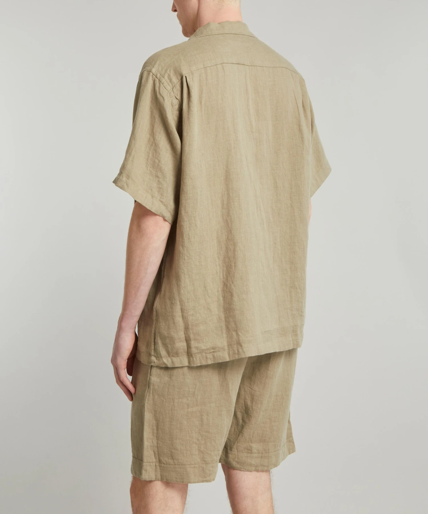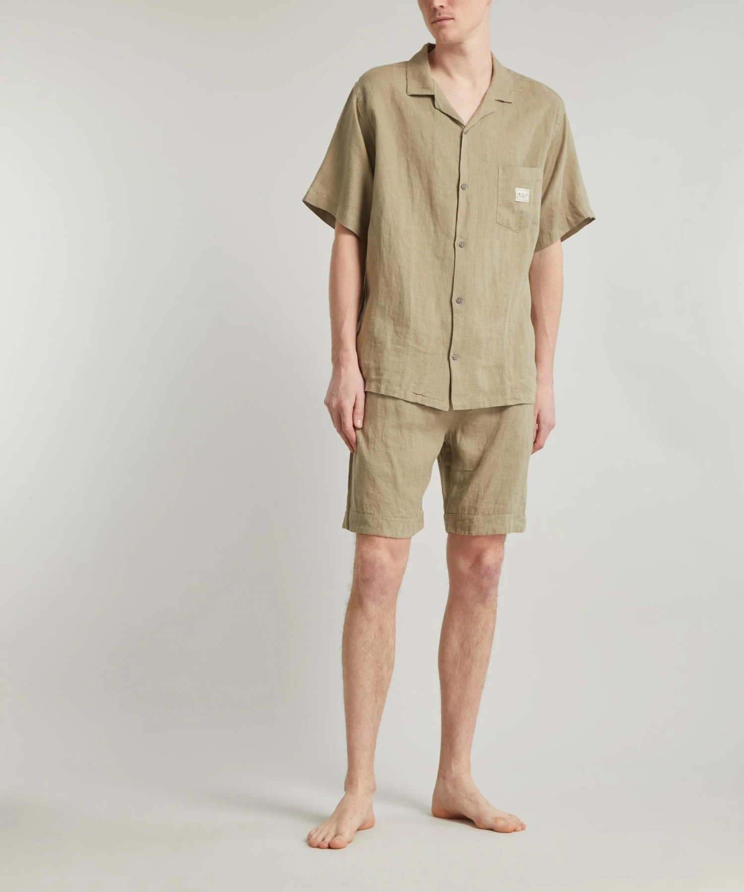 Breezy and easy-to-wear, the Cargo Green Linen Cuban Pyjama Set will take you from bed to beach to barbeque. Lightweight and loose, this Cuban shirt and short set is crafted from luxuriously woven premium linen for a flawless finish and durable long-lasting wear.