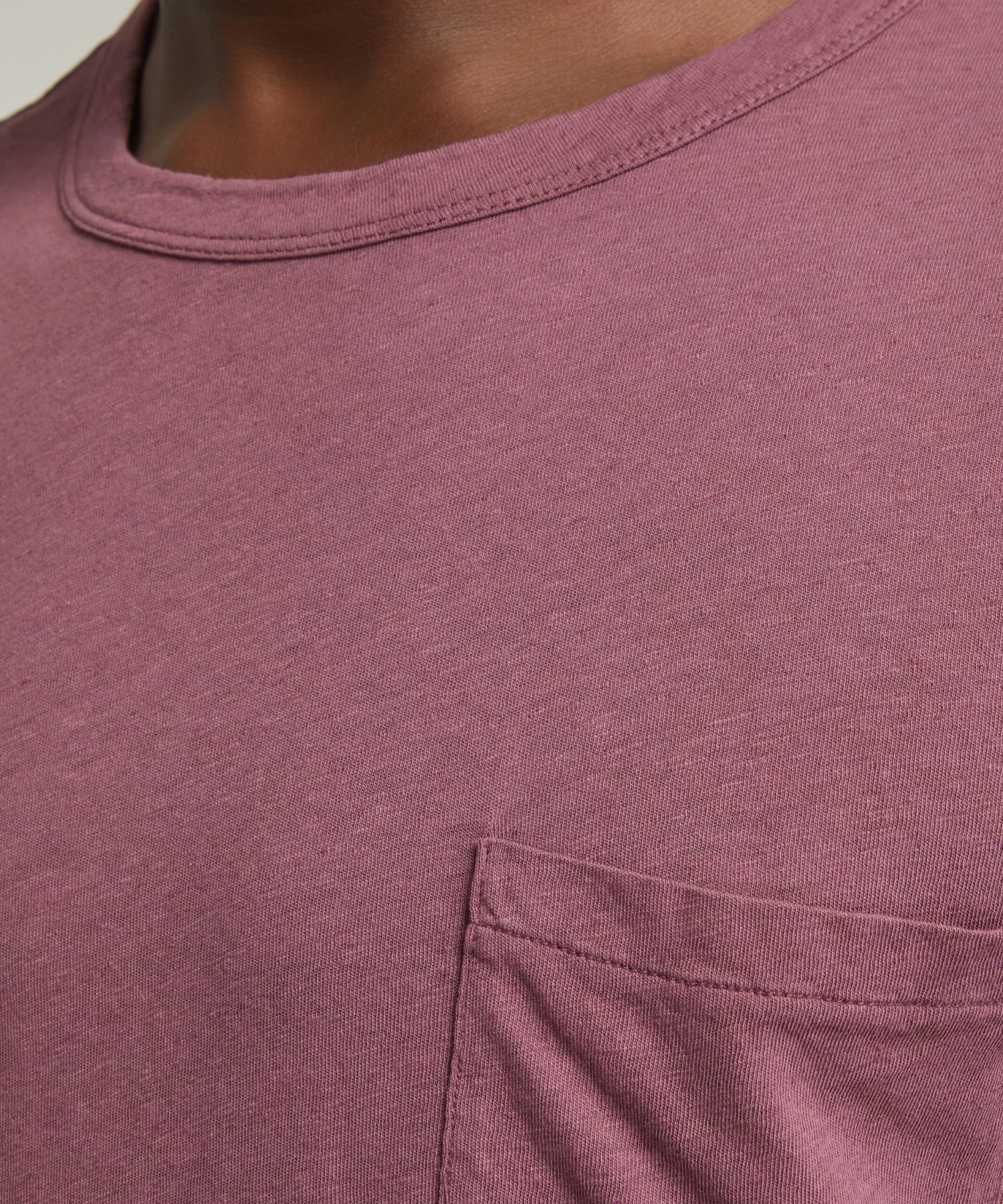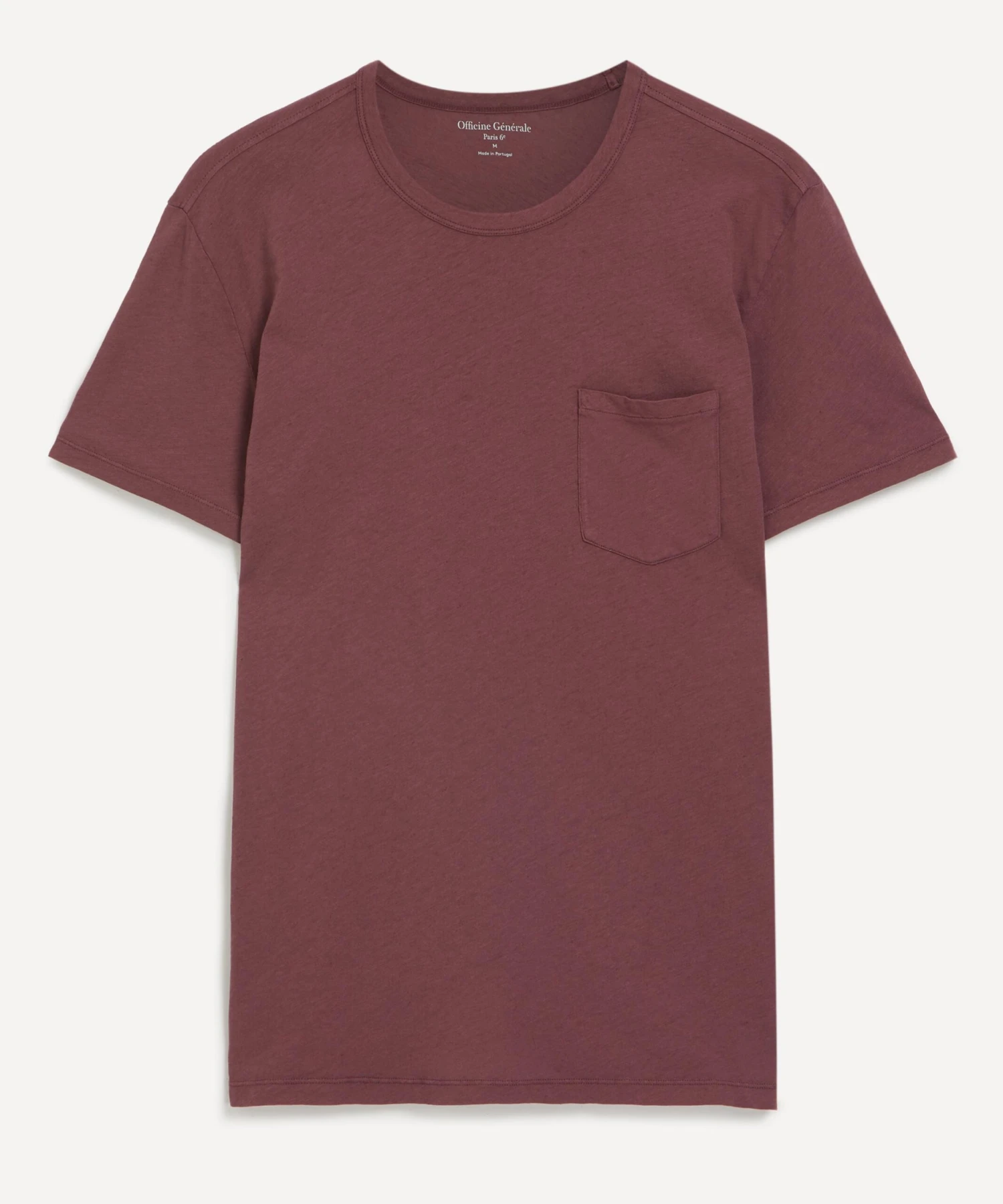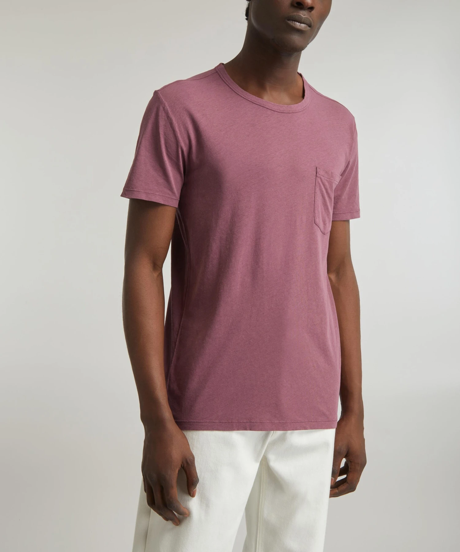 Cut from a lightweight cotton, linen and Tencel-blend fabric, this classic crew-neck top features short sleeves and a single patch pocket at the chest. Pigment dyed for a rich depth of colour, this plum-red t-shirt instantly elevates your casual edit.