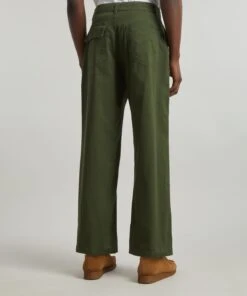 Crafted from garment-washed, cotton twill fabric exclusively developed by the brand, this khaki pair boasts a baggy, wide fit complete. A classic utilitarian design, it features slanted slip pockets, and two flap pockets at the rear.