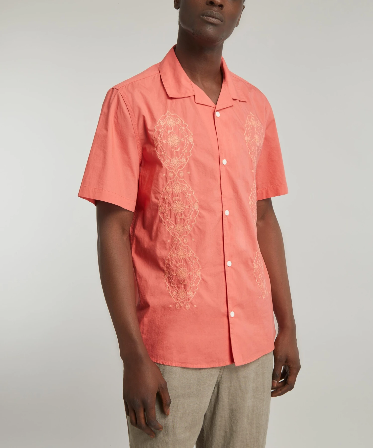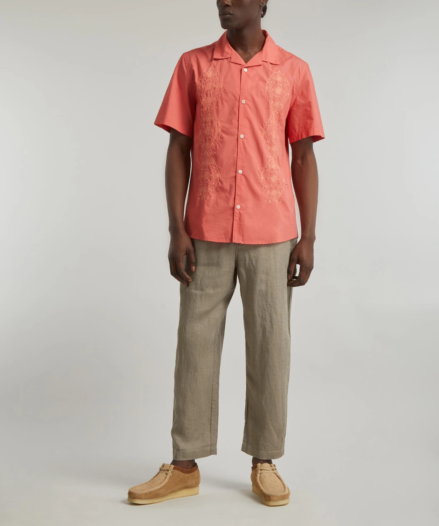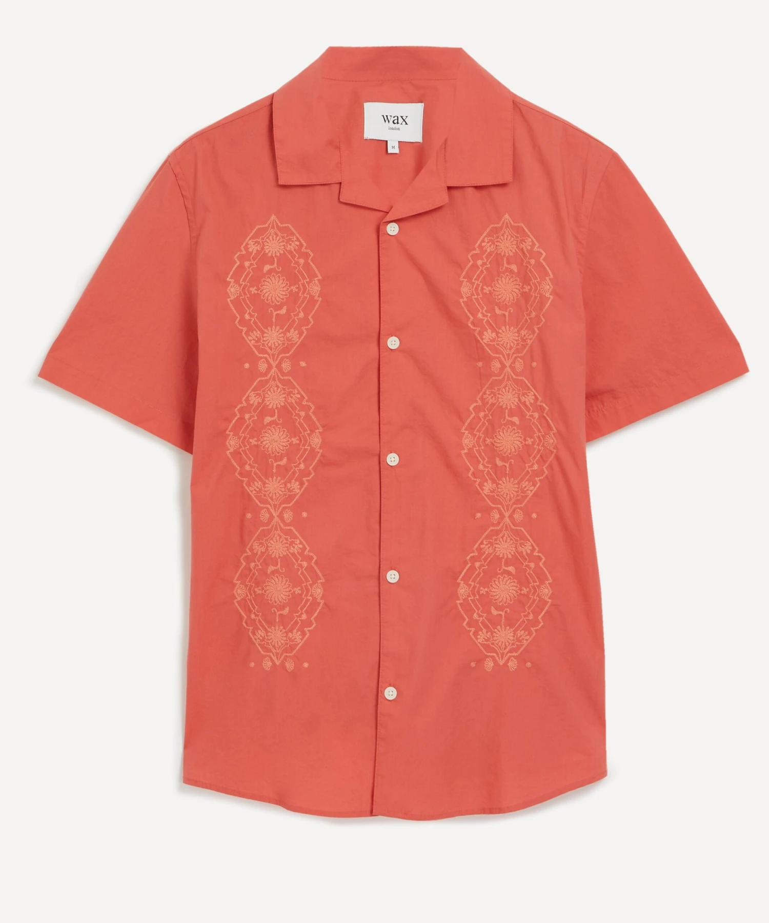 The Didcot Coral Trio Embroidered shirt from Wax London embodies the brand’s outlook as a London based label that keeps storytelling and sustainability at its heart.