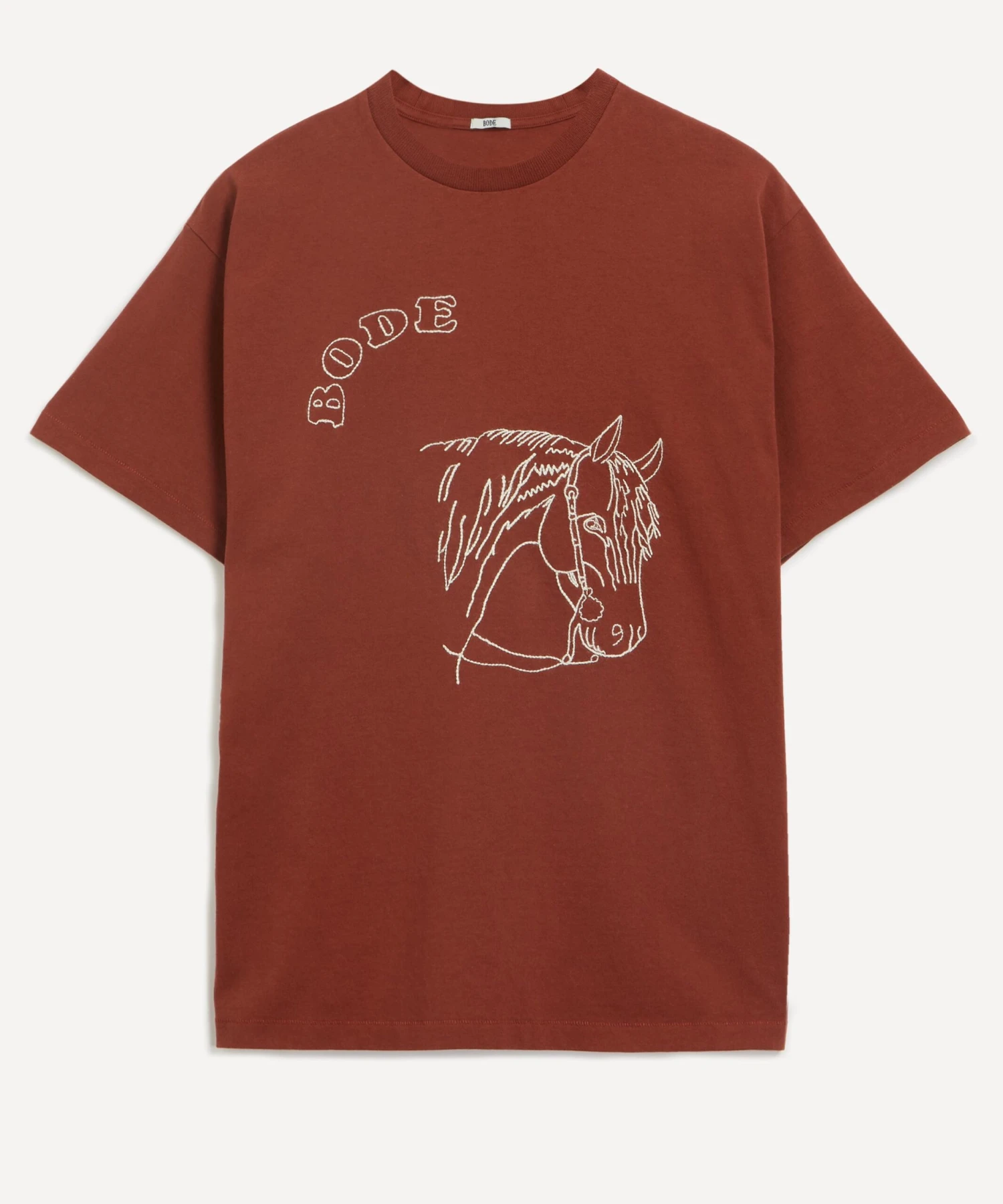 Add a Western flair to your everyday edit with Bode’s Embroidered Pony t-shirt, showcasing the brand’s eclectic approach with its’ playful design. Crafted from cotton that’s cut to a boxy fit with dropped shoulders, this crew-neck top features a contrast chain-stitch embroidered pony inspired by a tee from the 1940s, and is complete with branding to the chest.