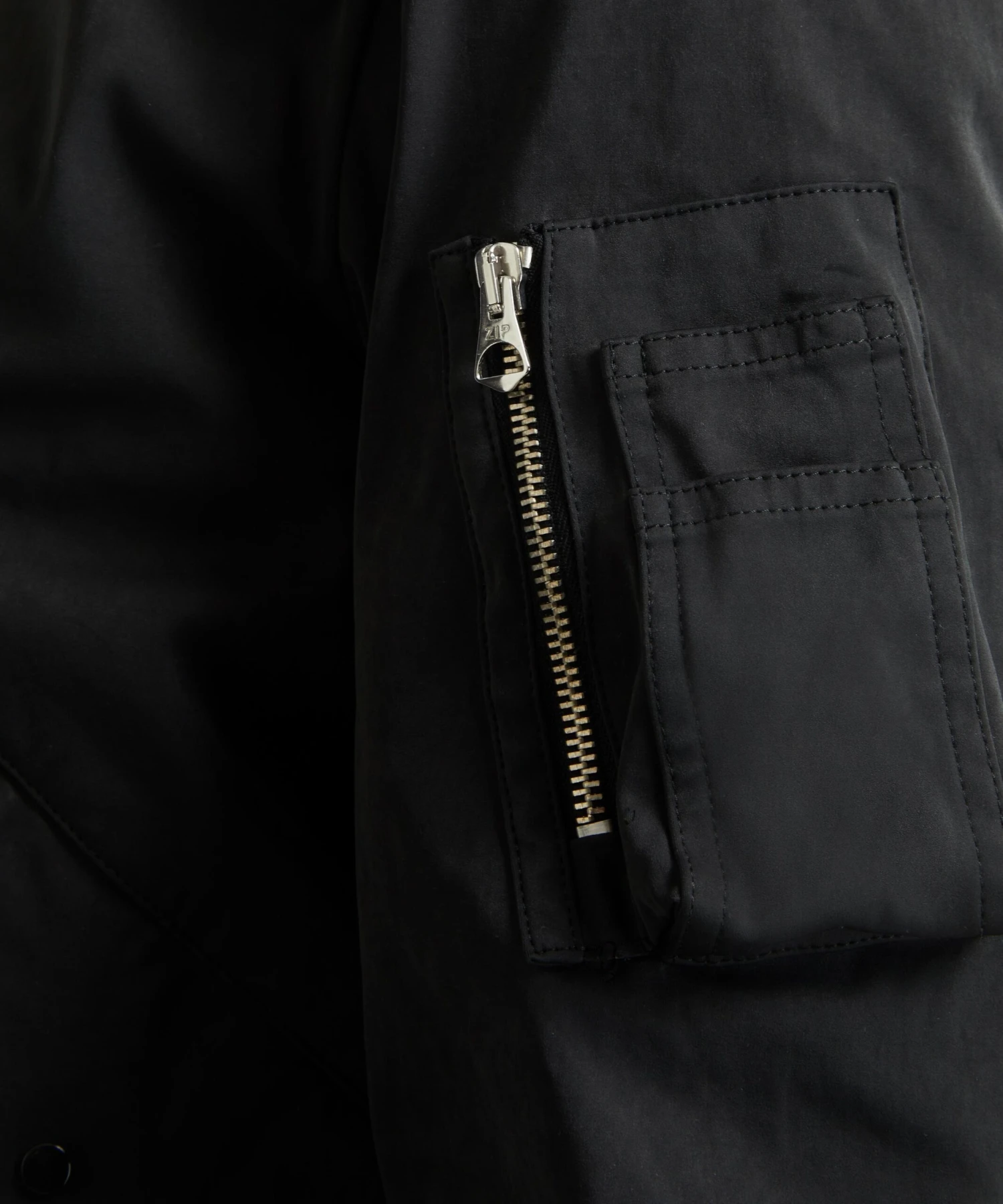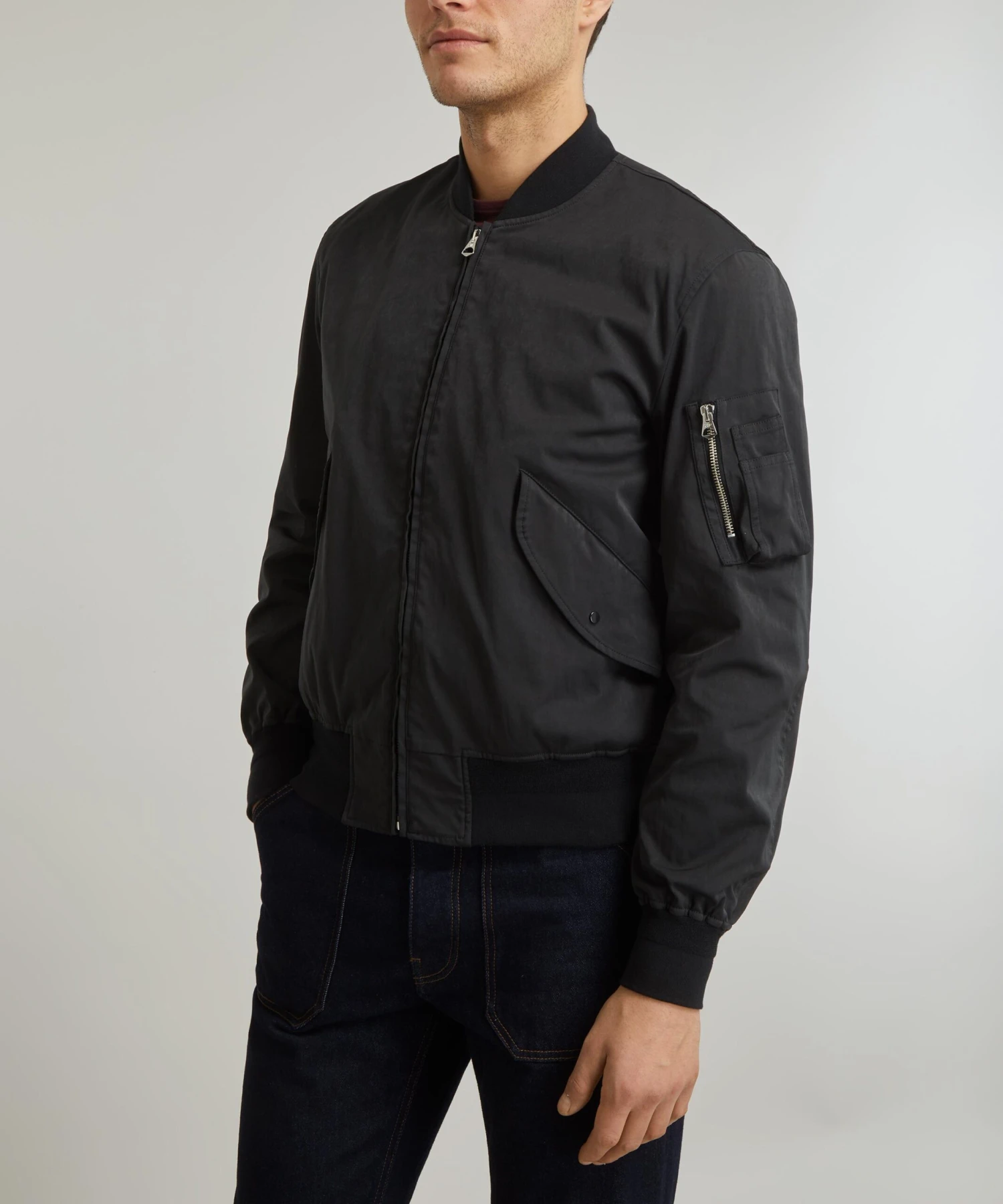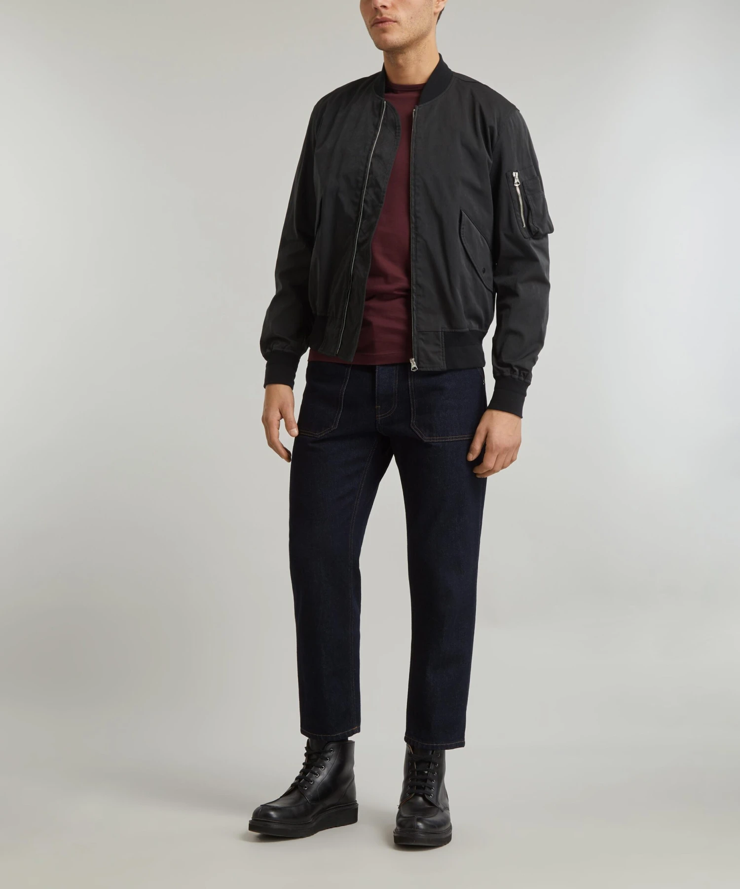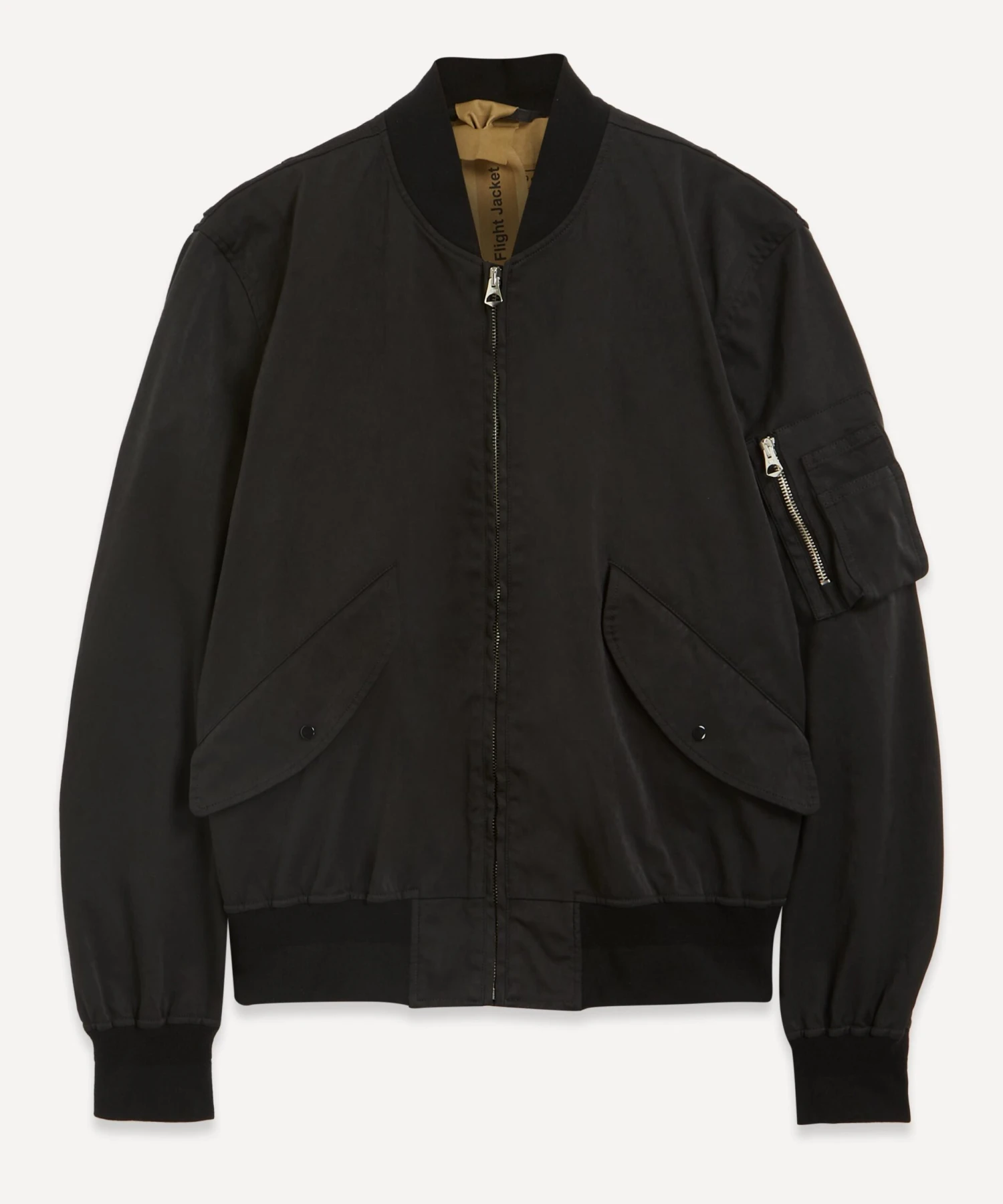 Taking inspiration from the classic MA1 flight jackets originally designed for pilots, this bomber jacket is cut from Ten Câs signature OJJ âOriginal Japanese Jerseyâ fabric for a lightweight, slim fit featuring a micro-ribbed fabric turtleneck, front flap-pockets and a flight-pocket to the sleeve.