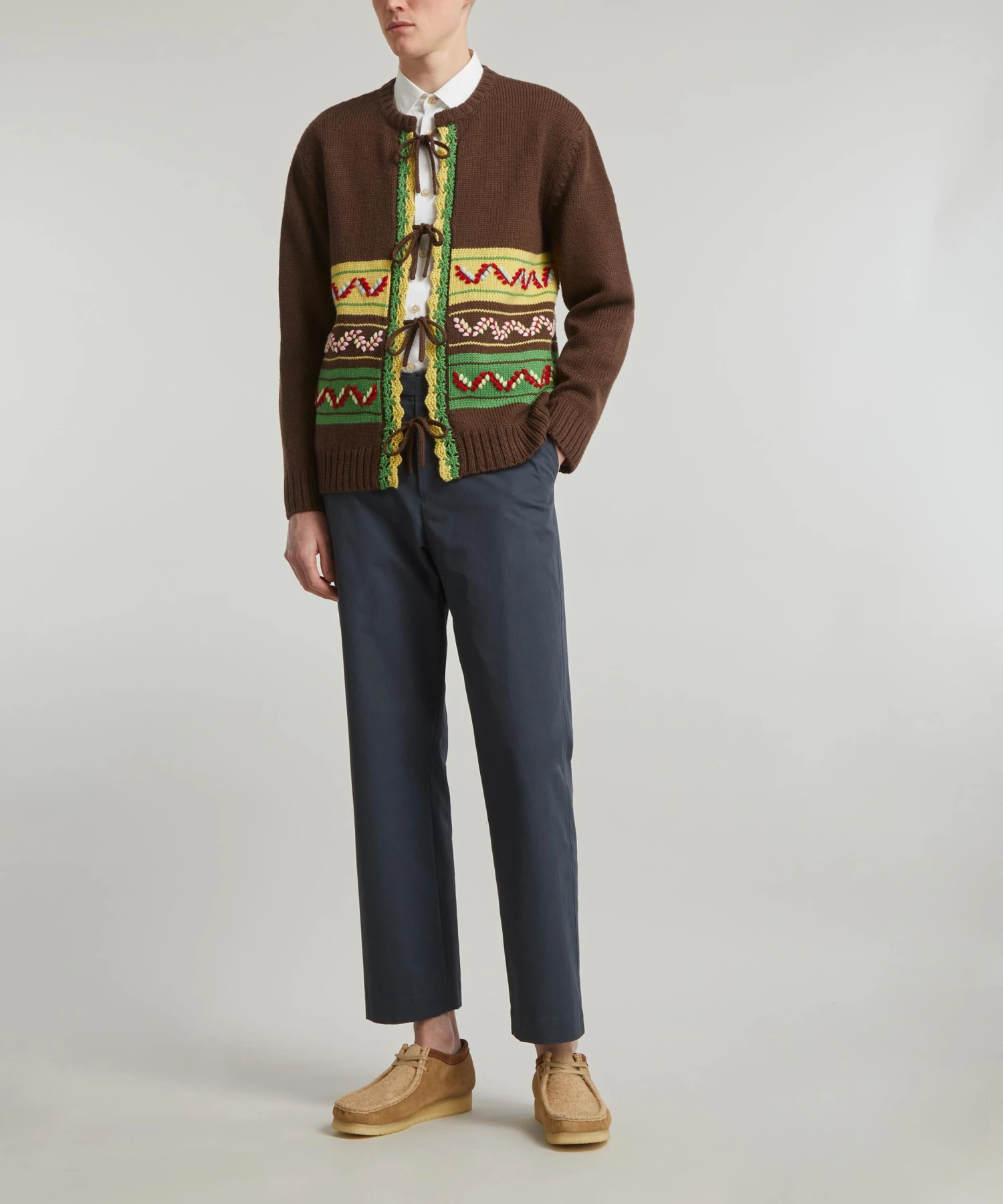 Bode’s eclectic approach is woven into every stitch of the Foliage cardigan. Crafted from Merino wool, this vintage-inspired knit has a boxy fit. Complete with four front tie closures, it’s embellished with authentic floral embroidered motifs for a folkish finish.