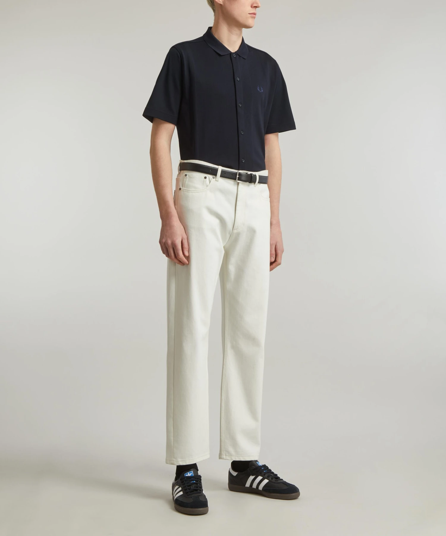 This smart button-through polo shirt is by none other than Fred Perry. Crafted from engineered mesh stripe jersey fabric, this short-sleeve style features a classic flat-knit collar and a fully-buttoned front closure complete with the brand’s iconic Laurel Wreath embroidered at the chest.