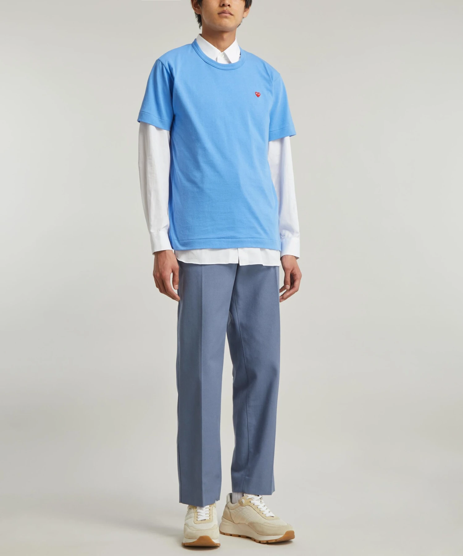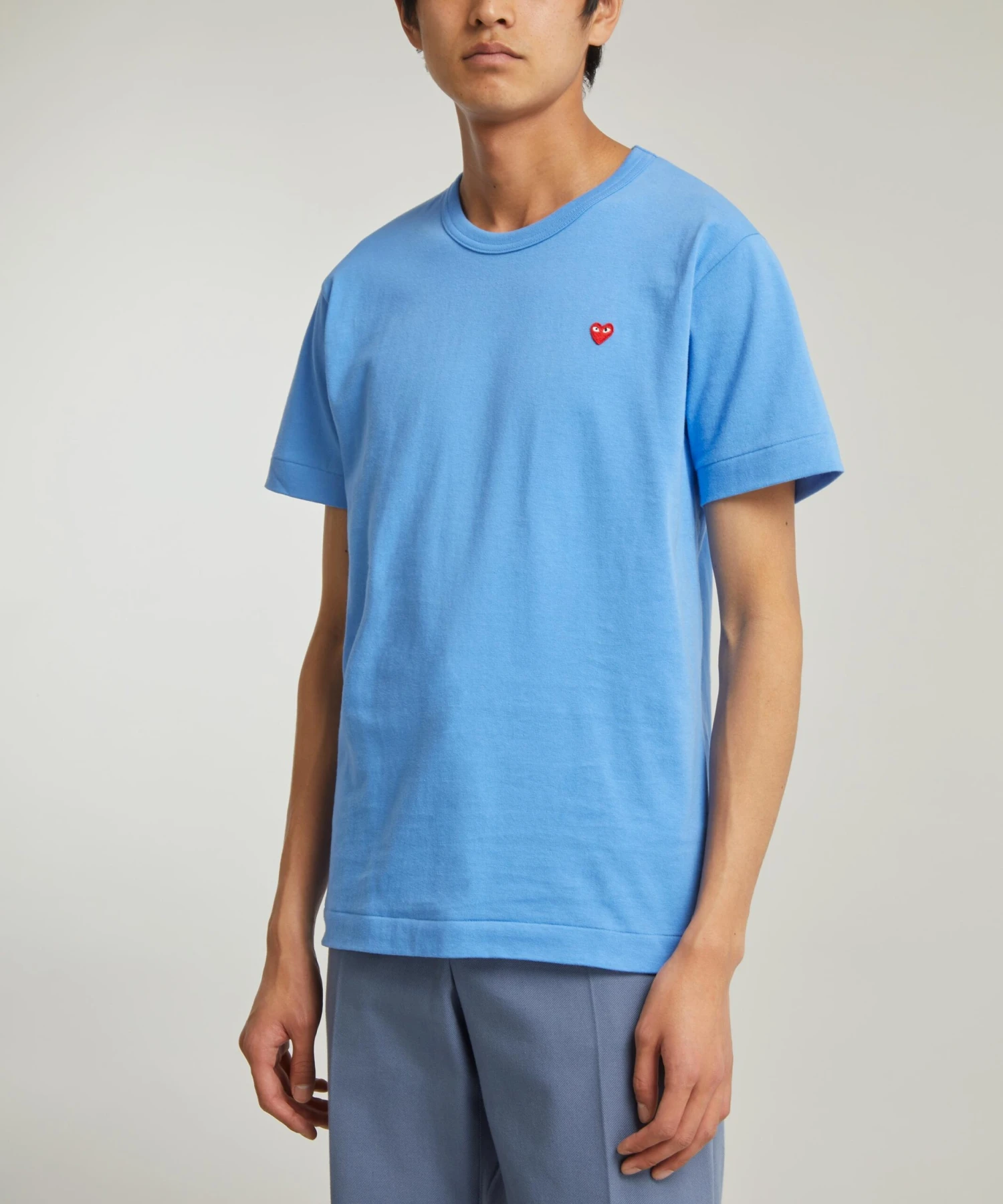 Comme des Garçons PLAY’s instantly recognisable heart logo adorns this sky-blue t-shirt. Cut from cotton jersey with short-sleeves and a classic crew-neck collar, it’s finished with the iconic heart logo appliquéd in red at the chest.