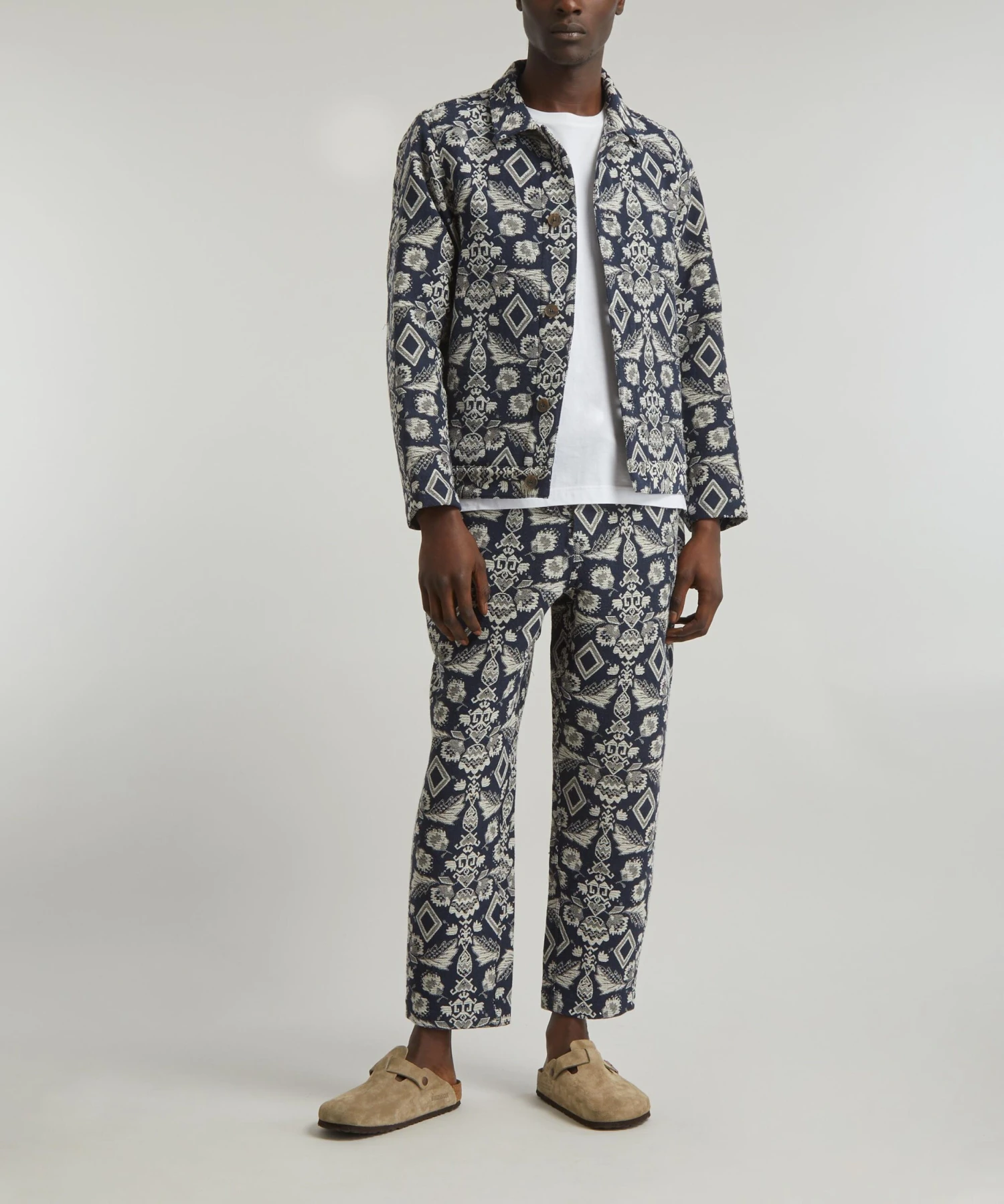 The Kurt Floral Jacquard trousers from Wax London embody the brand’s outlook as a London based label that keeps storytelling and sustainability at its heart.