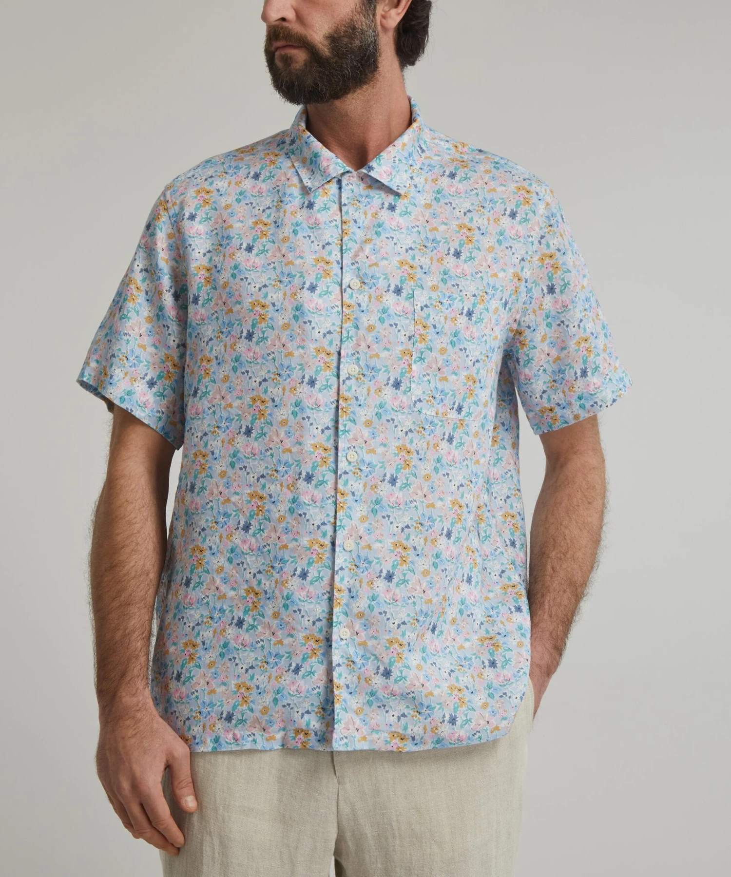 Our Kingly shirt fit is relaxed and easy to wear, with an open neck and a flattering, short sleeved silhouette, here featuring our California Bloom print. California Bloom has a loose, carefree quality – based on an archival Liberty design dating from the 1970s, it features a medley of freely-drawn and painterly florals. This shirt has been expertly crafted from our super soft and breathable Willington Hemp – a textural natural fibre with many recognised sustainable properties. Endlessly versatile, wear with everything from shorts and knits to loose linen trousers and sandals for easy, off-duty appeal.
