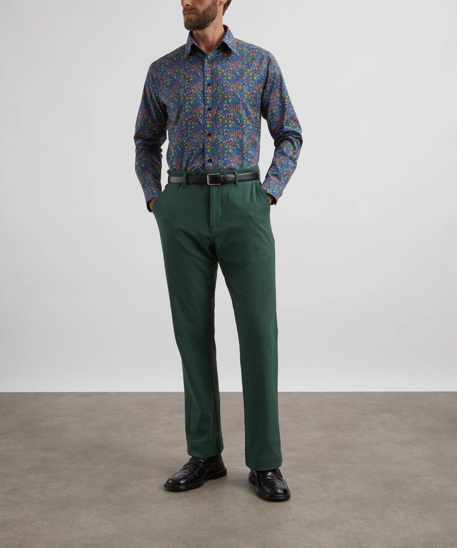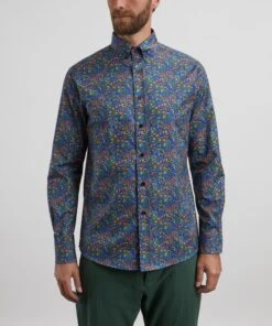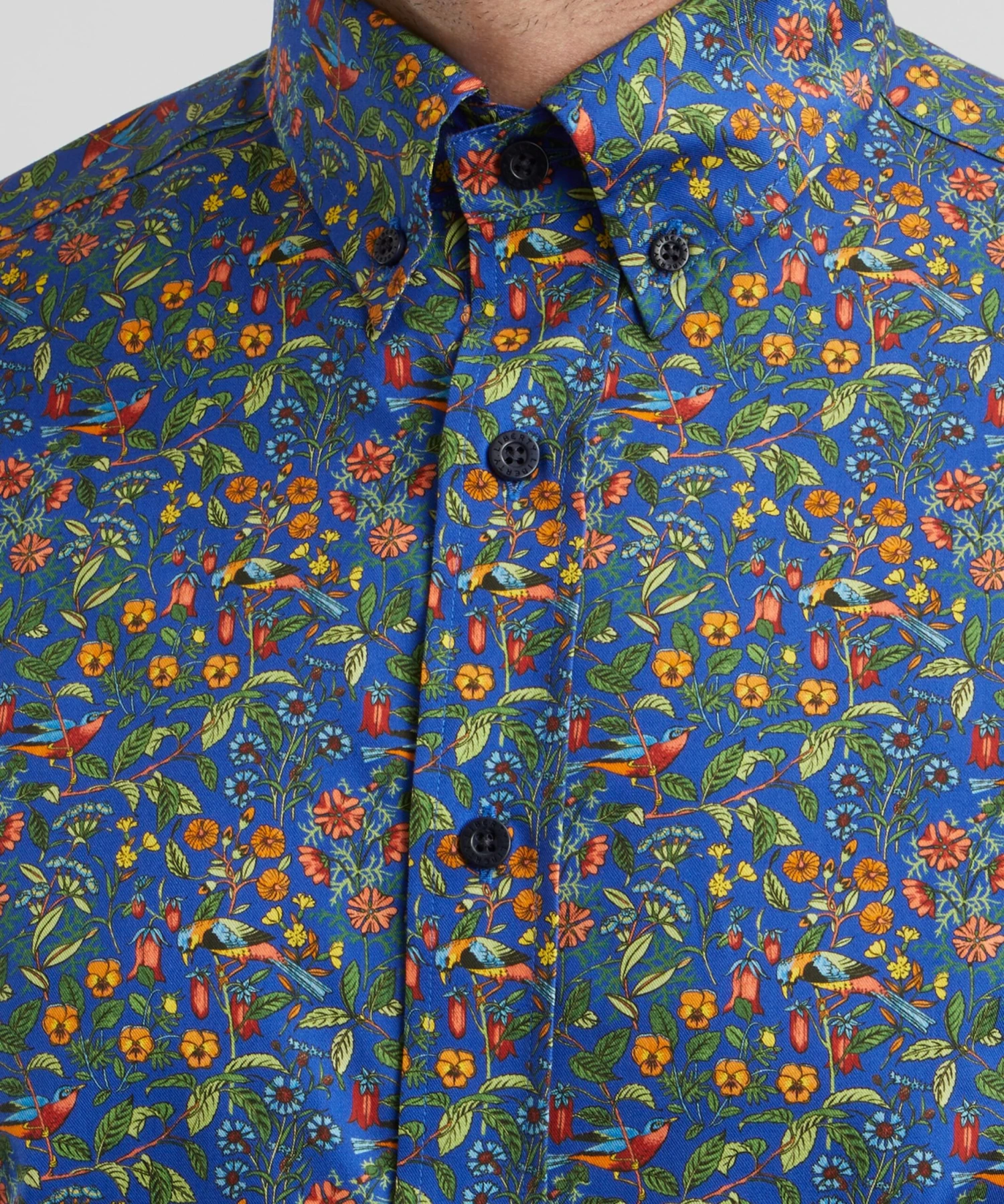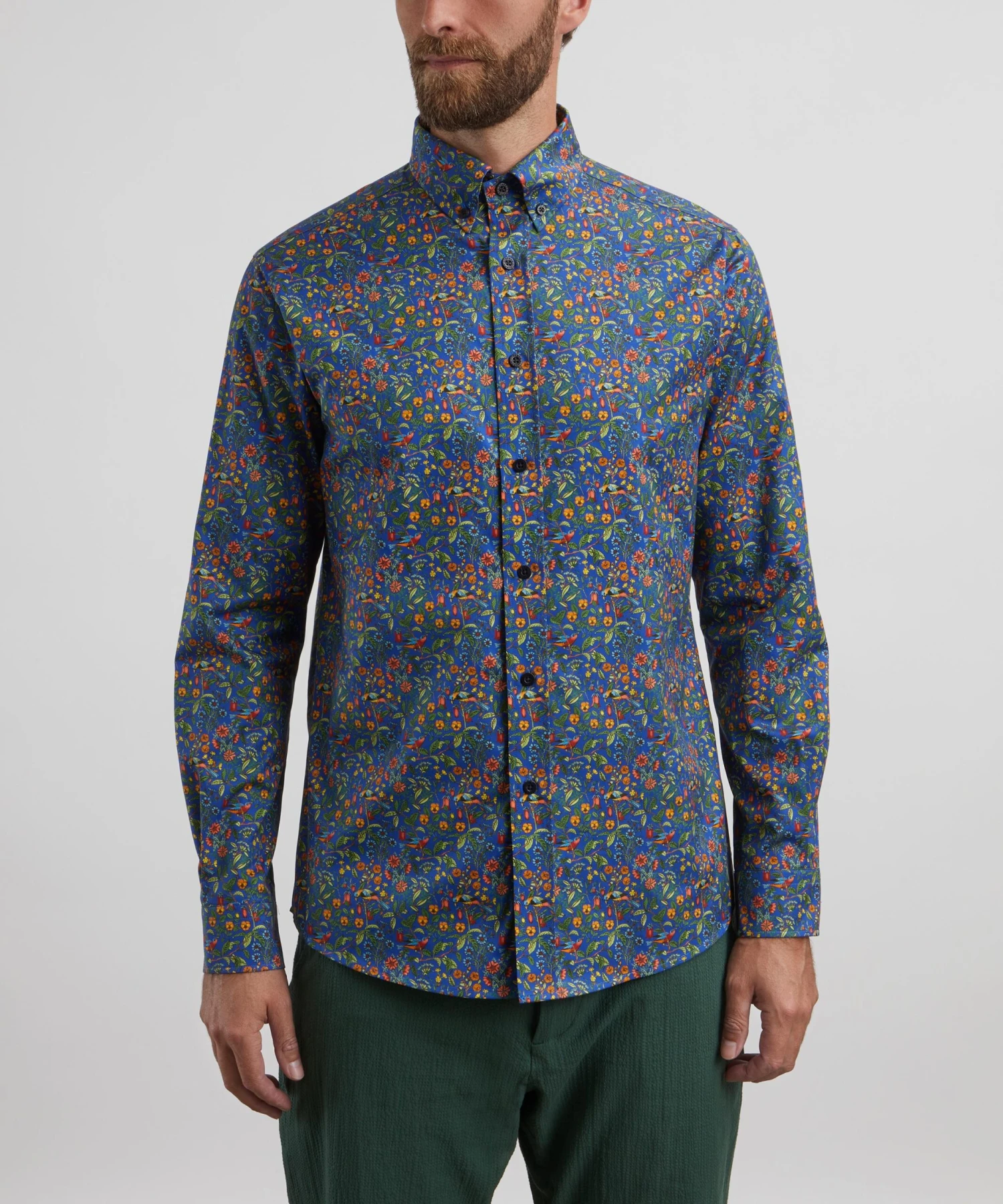 Developed to complement every build, our Alex men’s shirt has a classic silhouette that looks equally good fully buttoned or undone as an overshirt. Constructed from heavier-weight 185gsm cotton twill and finished with corozo nut buttons, the shirt is expertly printed in Italy with our archival Catesby design – depicting a lush tangle of botanicals, dotted with plumed songbirds caught mid-twitter. For your off-duty edit, layer the long-sleeved shirt over a clean white tee with shorts and sneakers, or elevate with suit trousers and a jacket for a classic look.