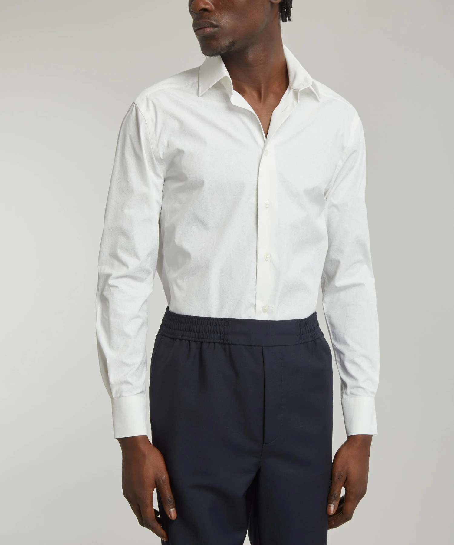 Our Henry Formal fit shirt is refined and suave – perfect for a subtle form of expression, whilst respecting a formal dress code. Its adjustable collar is designed to look great with ties or unbuttoned, while its newly developed convertible cuffs can be worn buttoned or with cufflinks for more formal social settings. This shirt has been expertly printed in Italy with a tonal ornate botanical paisley, creating the effect of a design that can only be noticed up close – a characteristically Liberty spin on a plain white shirt. This versatile piece will effortlessly elevate your sartorial edit, and is perfect for adding subtle flair to wedding ensembles.