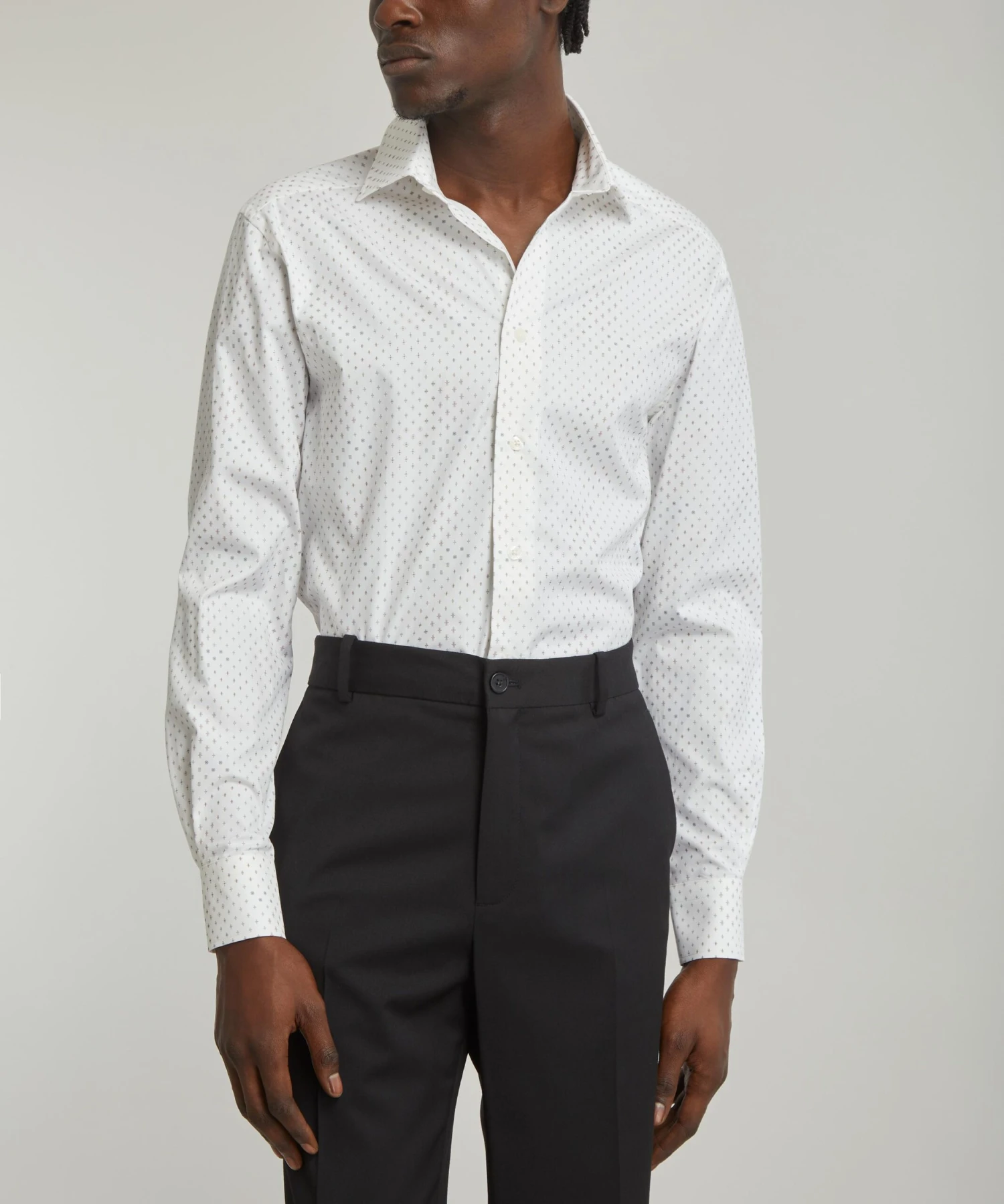 Our Formal fit shirt is refined and suave, a wardrobe staple that draws upon a mixture of classic Liberty prints and new designs created specially for the collection. Its adjustable collar is designed to look great with ties or unbuttoned, while its newly developed convertible cuffs can be worn buttoned or with cufflinks for more formal social settings. Expertly printed in Italy with our Micro Patti design – a finely detailed geometric print accented with subtle hints of colour – this Liberty print shirt will effortlessly elevate your sartorial edit.