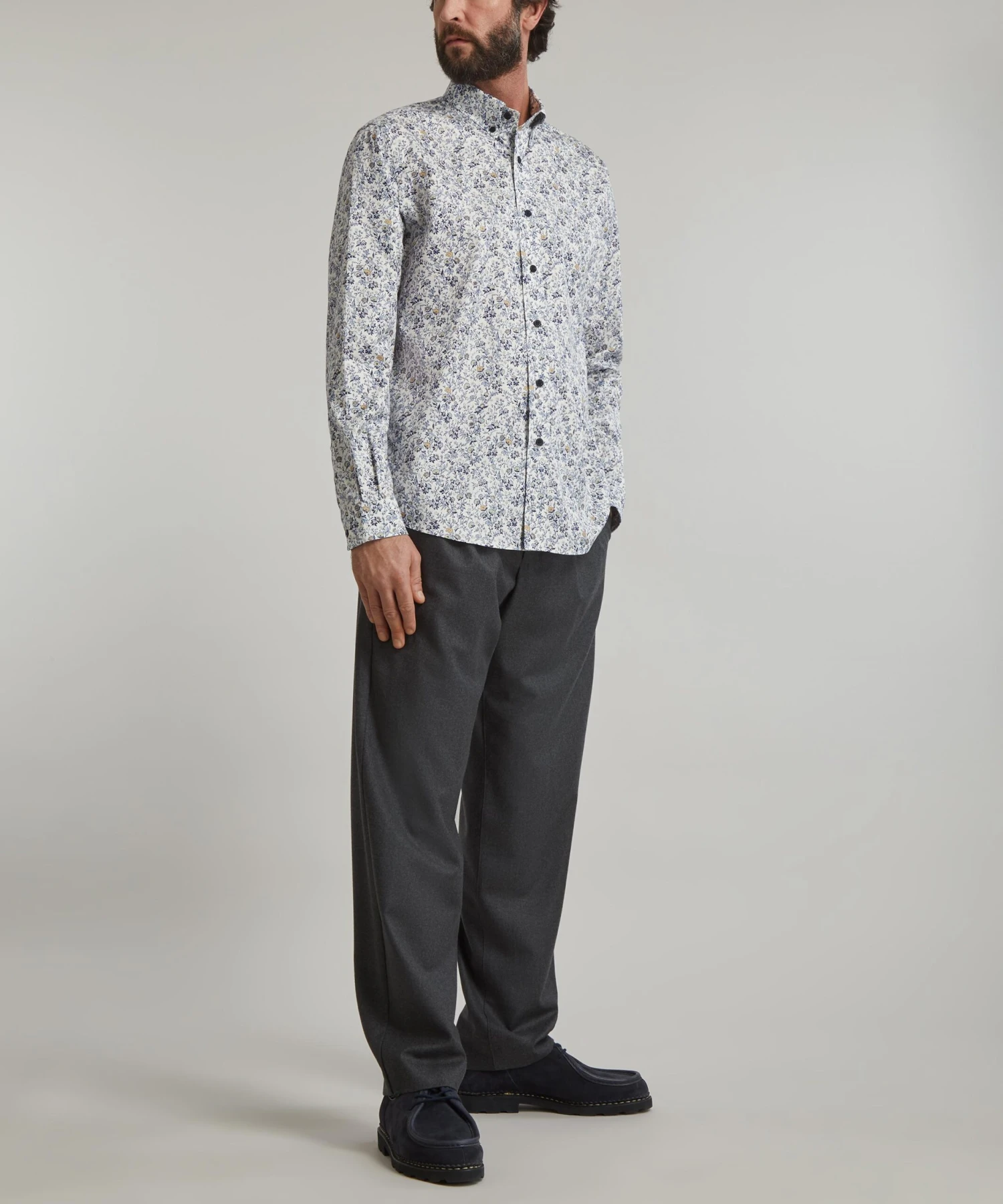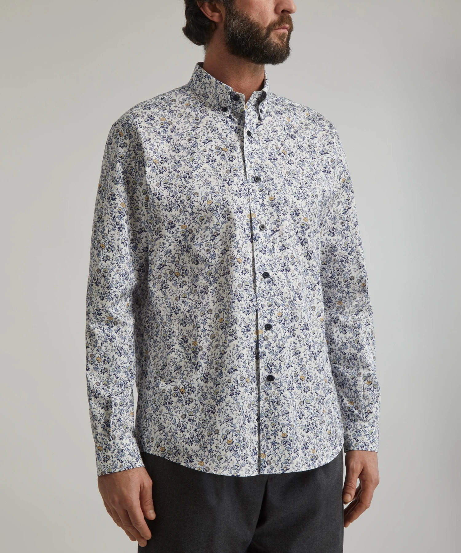 Developed to complement every build, our Alex men’s shirt has a classic silhouette that looks equally good fully buttoned or undone as an overshirt. Constructed from heavier-weight 185gsm cotton twill and finished with corozo nut buttons, the shirt is expertly printed in Italy with our Mina design – a classic liberty floral from our AW19 archive collection. For your off-duty edit, layer the long-sleeved shirt over a clean white tee with shorts and sneakers, or elevate with suit trousers and a jacket for a classic look.