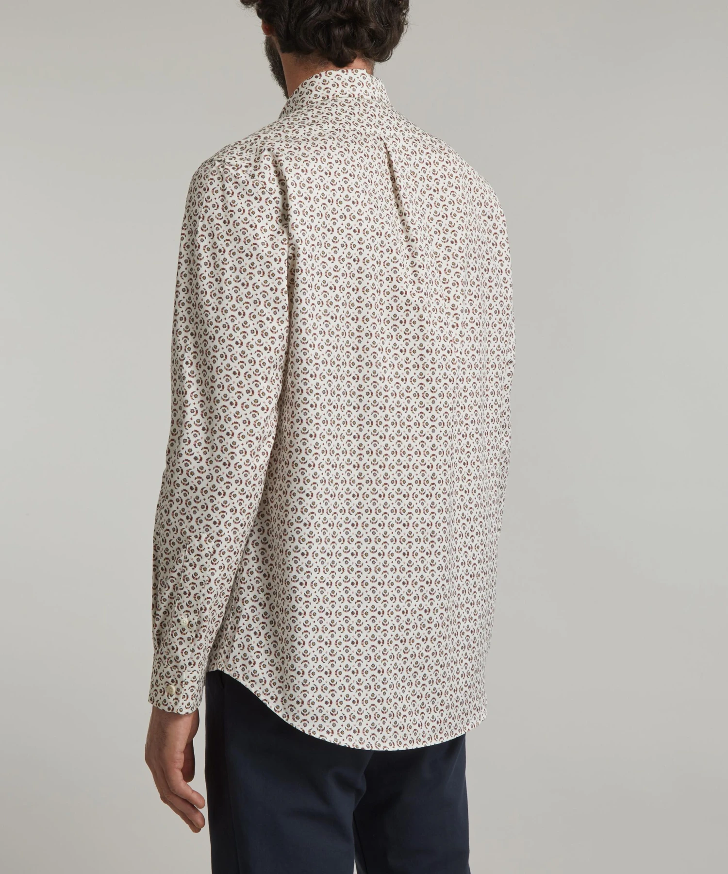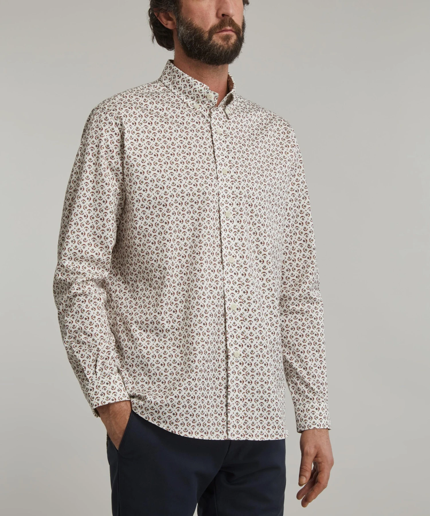 Developed to complement every build, our Alex men’s shirt has a classic silhouette that looks equally good fully buttoned or undone as an overshirt. Constructed from heavier-weight 185gsm cotton twill and finished with corozo nut buttons, the shirt is expertly printed in Italy with our Moon Dance design, featuring a richly hued playful swirling pattern. For your off-duty edit, layer the long-sleeved shirt over a clean white tee with shorts and sneakers, or elevate with suit trousers and a jacket for a classic look.