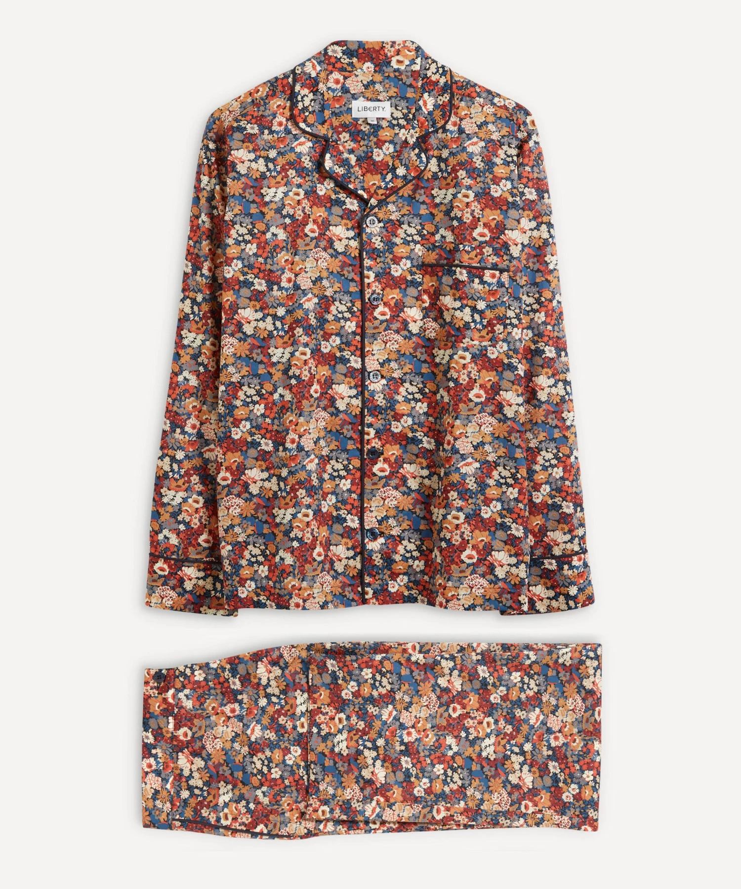 The long-sleeved Tana Lawn™ cotton pyjama set is designed by Liberty’s in-house studio team, printed at the Liberty Printing Mill with our iconic Thorpe design.