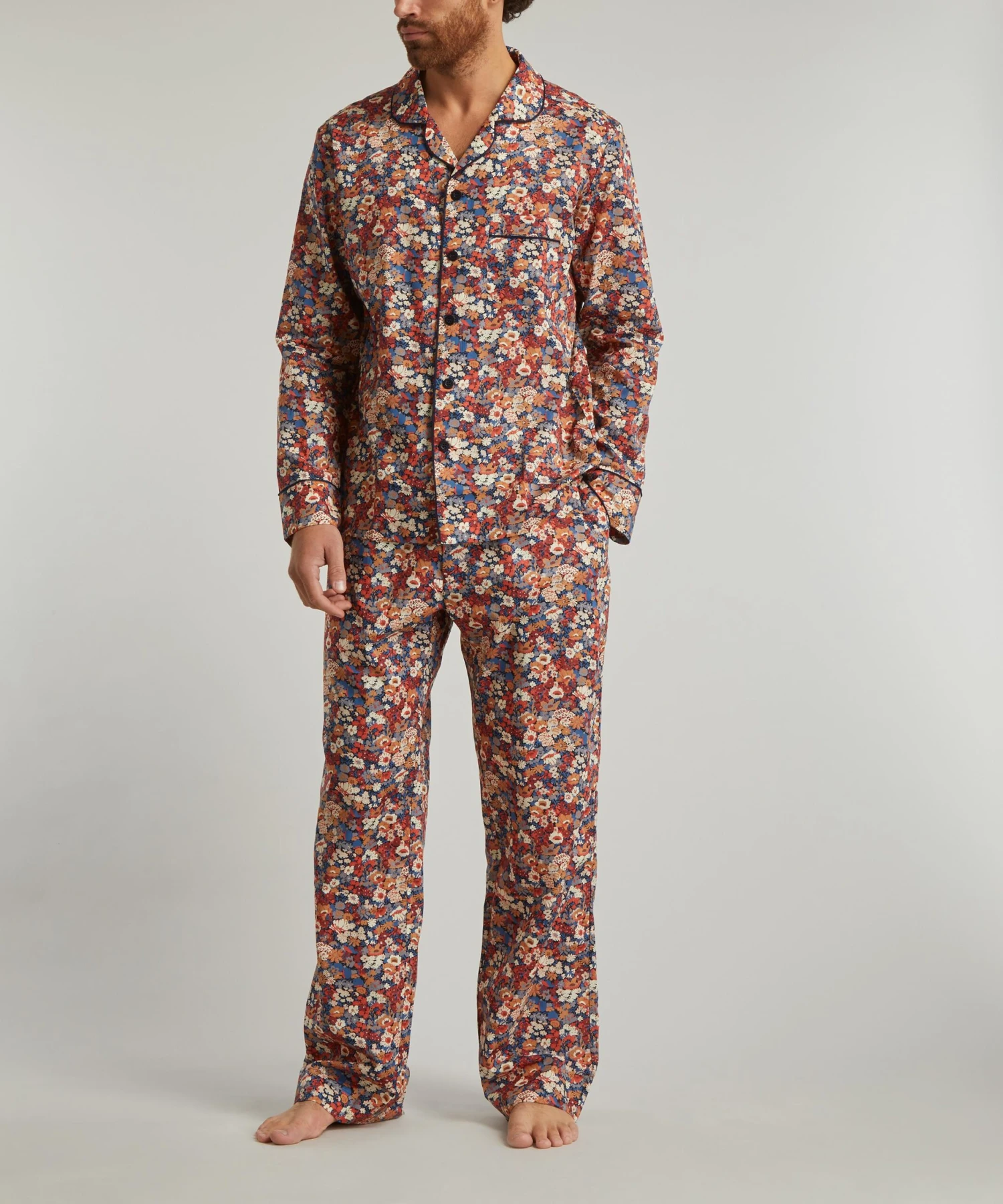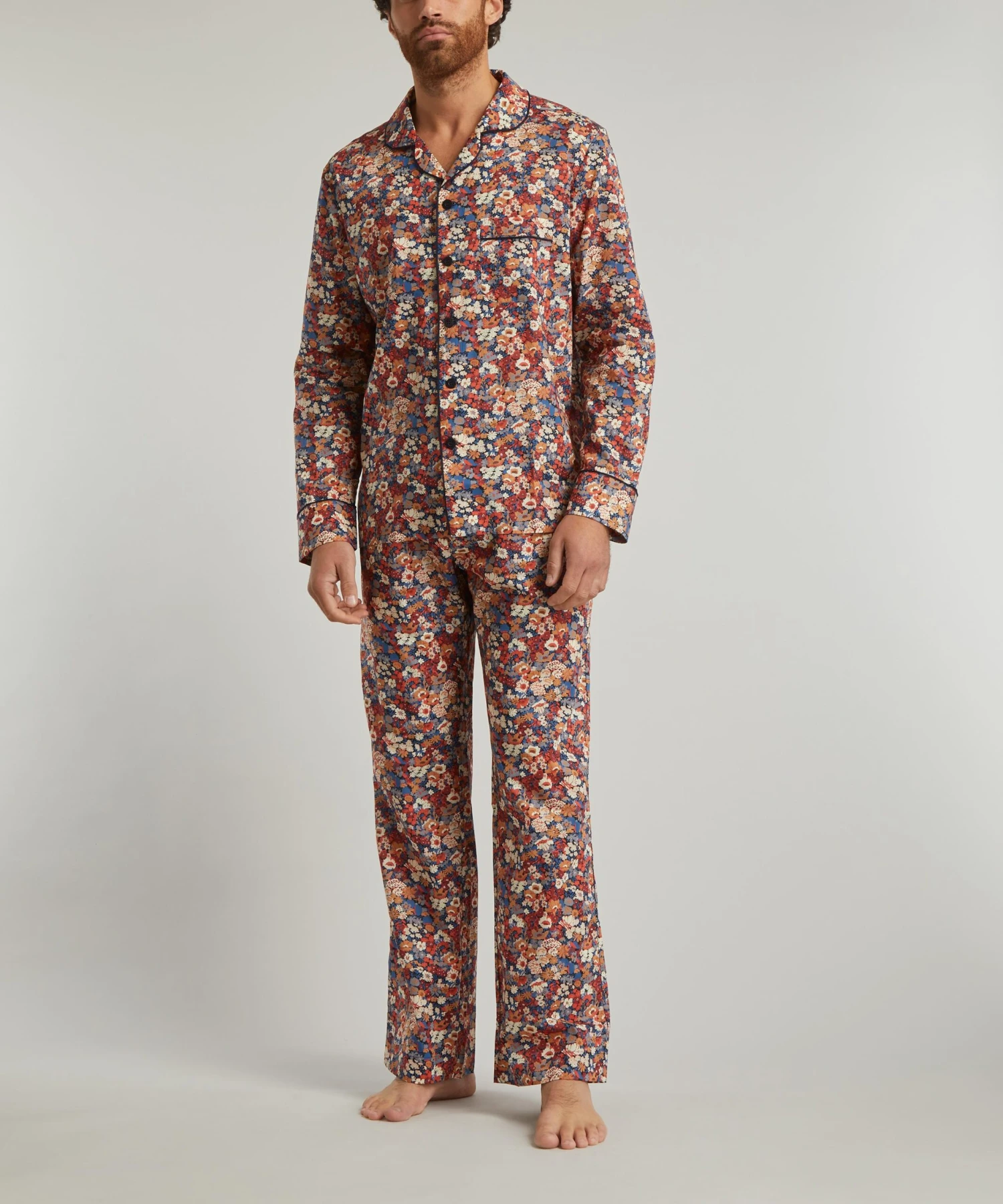 Our pyjama set is crafted from Tana Lawn™ cotton, a breathable and fluid revelation of a fabric that we’ve been perfecting for over a century. The colour-rich surface and smoothly soft hand-feel of this structured two-piece set is printed with Thorpe – named after the artist John Hall Thorpe, whose early-1900s paintings inspired its dense floral layout. Drawn and coloured in 1968, Thorpe’s flourishing design evokes the classic style of ‘30s Liberty florals.