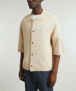 Bring some texture to your new season edit with the Milan knit shirt from Seoul-based label Le17septembre. Fitted with a collar, front button closure, short sleeves and rib trims, this linen-blend knit shirt is complete with a horizontal rib texture – an effortlessly stylish addition to your everyday wardrobe.
