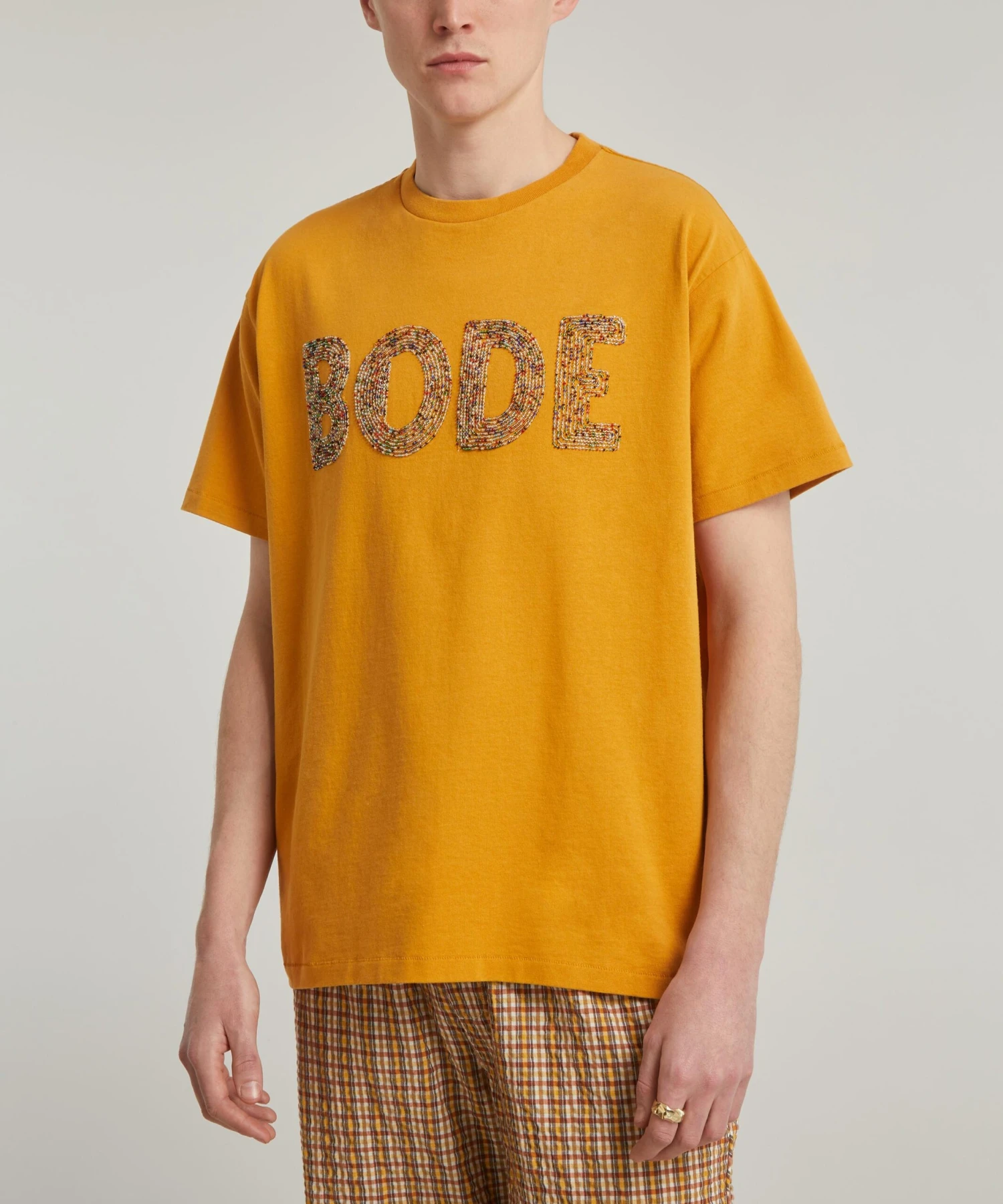 Bode’s eclectic approach is stitched into every bead of this embellished short-sleeve t-shirt. Crafted from cotton that’s cut to a boxy fit with slightly dropped shoulders, this crew-neck top is inspired by vintage children’s novelty t-shirts with its beaded logo embroidered across the chest.