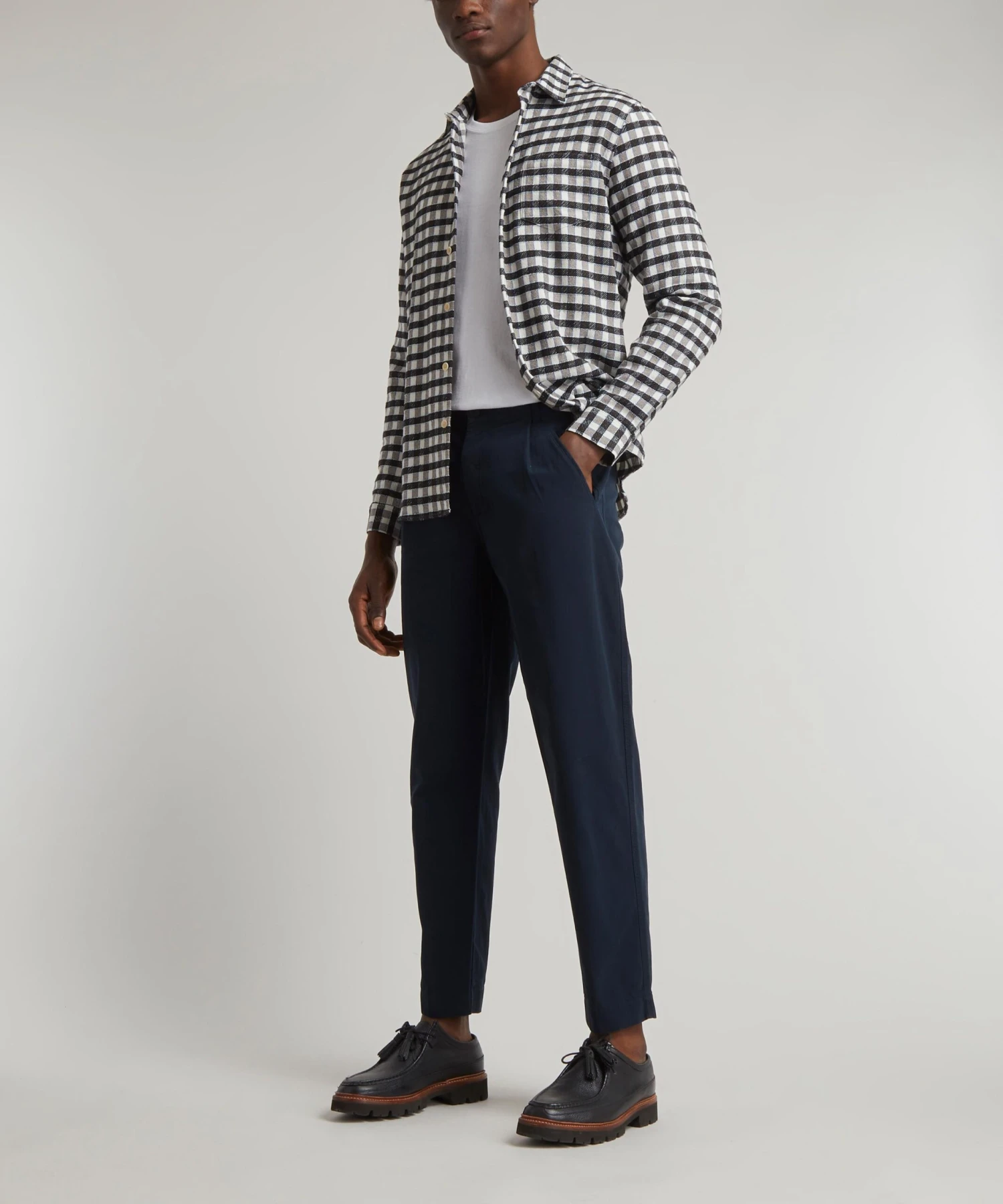 Expertly crafted and carefully articulated, the Navy assembly pants from Folk deserve a spot in every male’s new season collection.