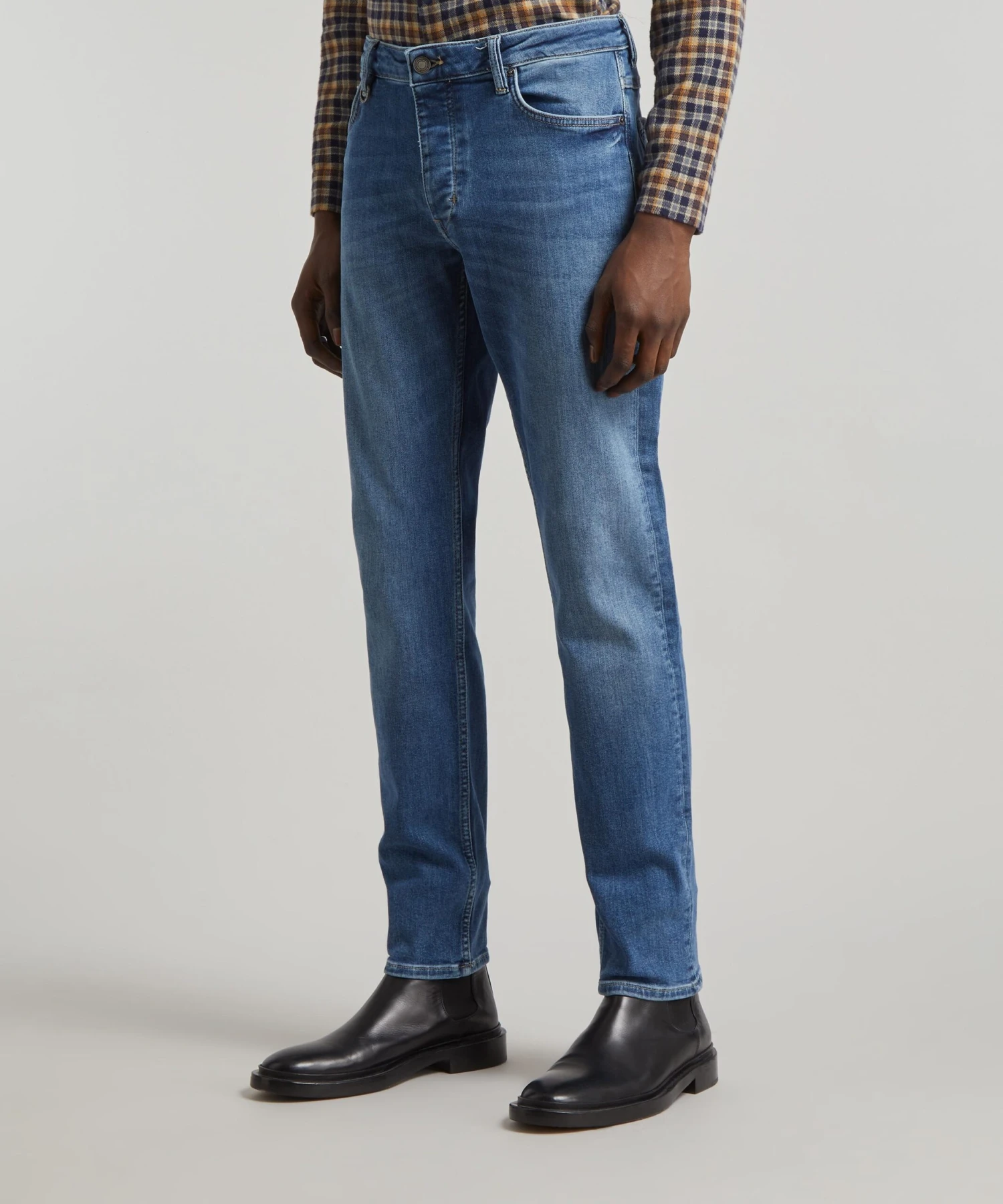 Boasting a versatile blue colour palette, these slim leg jeans have been expertly crafted to deliver optimum wearability and unrivalled quality. Featuring classic button and zip closure, these jeans also feature belt loopholes and functional pockets to the front and back. A staple pair in every trend-led male’s denim collection, for an impactful ensemble that’s sure to capture attention, partner with a navy and ochre shirt and some smart black leather Chelsea boots.