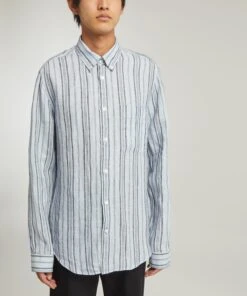 A demonstration in simplistic styles with strong attention to detail, Danish label NN07 brings us the Arne 5220 shirt. Crafted from a lightweight and loose linen fabric, this stripy-blue long-sleeve shirt features a buttoned collar and a single patch-pocket at the chest.