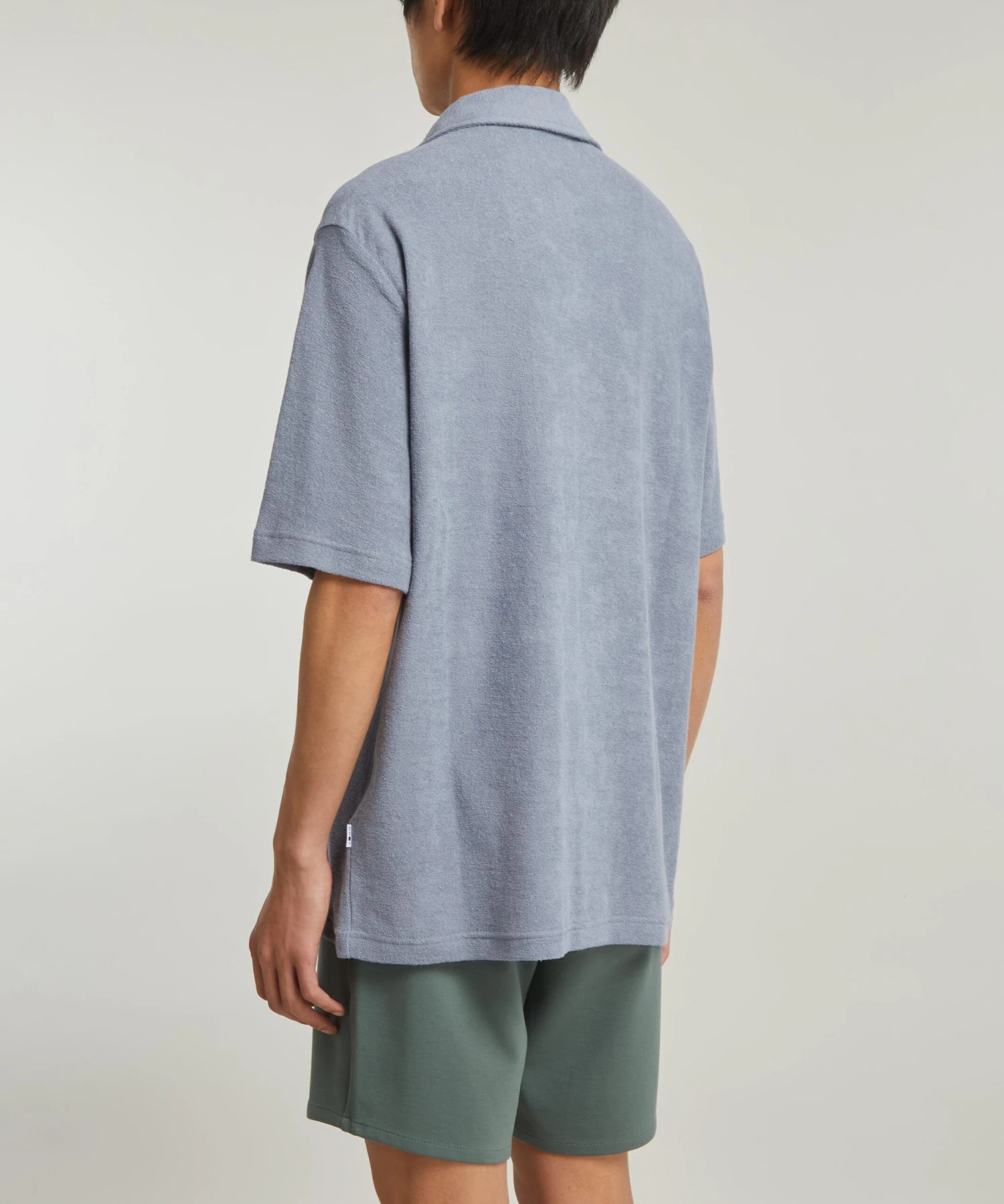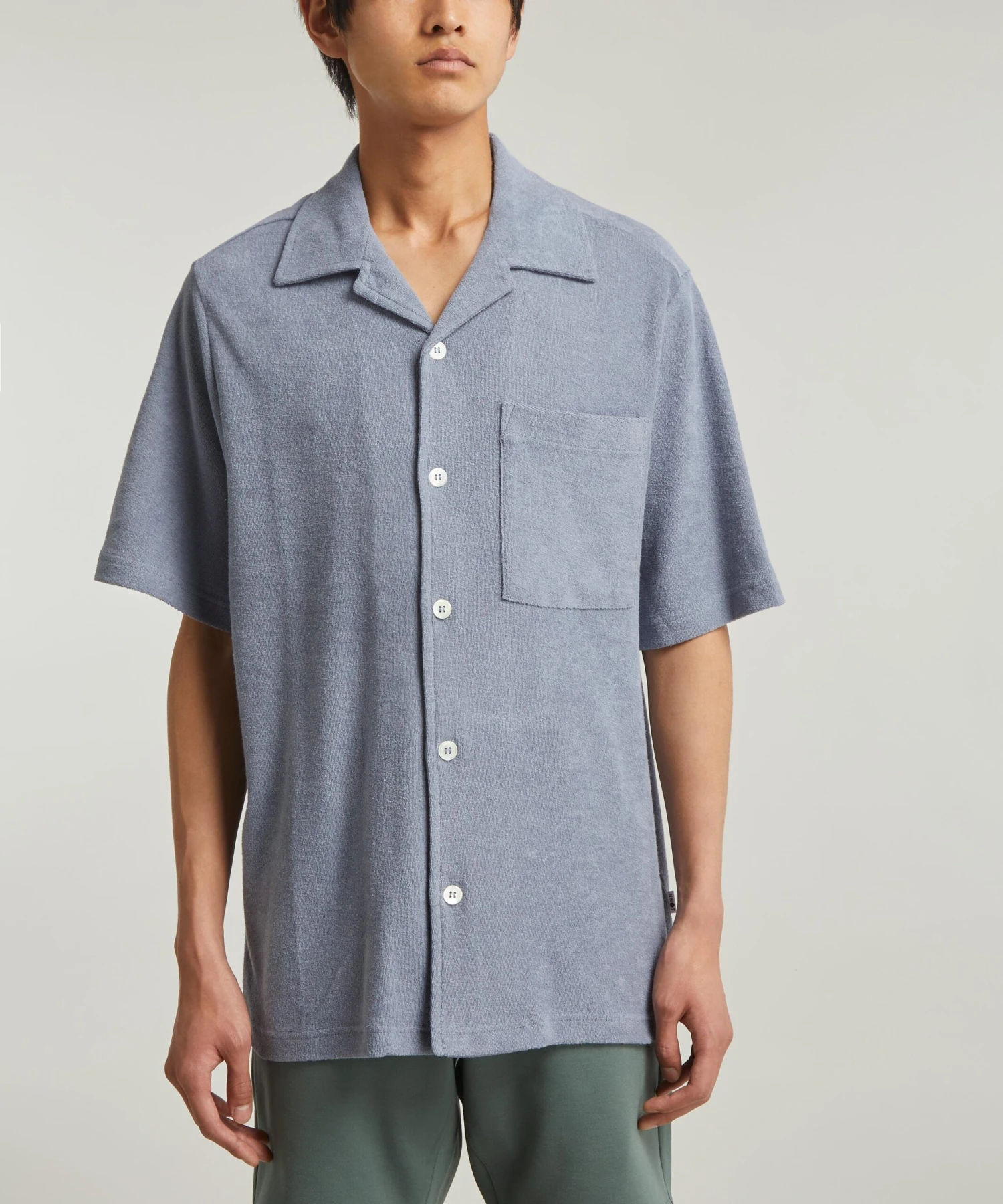 A demonstration in simplistic styles with strong attention to detail, Danish label NN07 brings us the Julio 3370 shirt. Crafted from a tactile, towel-like terrycloth fabric, this bowling-style shirt features a classic Cuban collar, short-sleeves and a single patch-pocket at the chest.