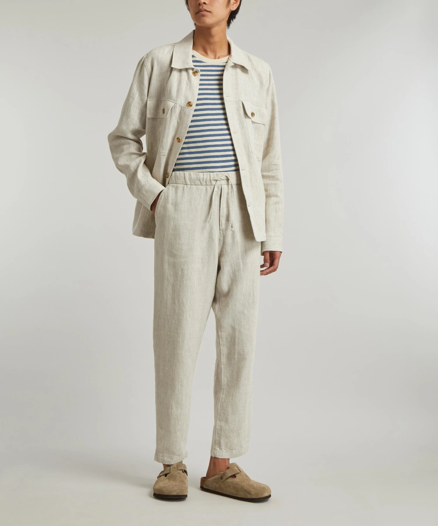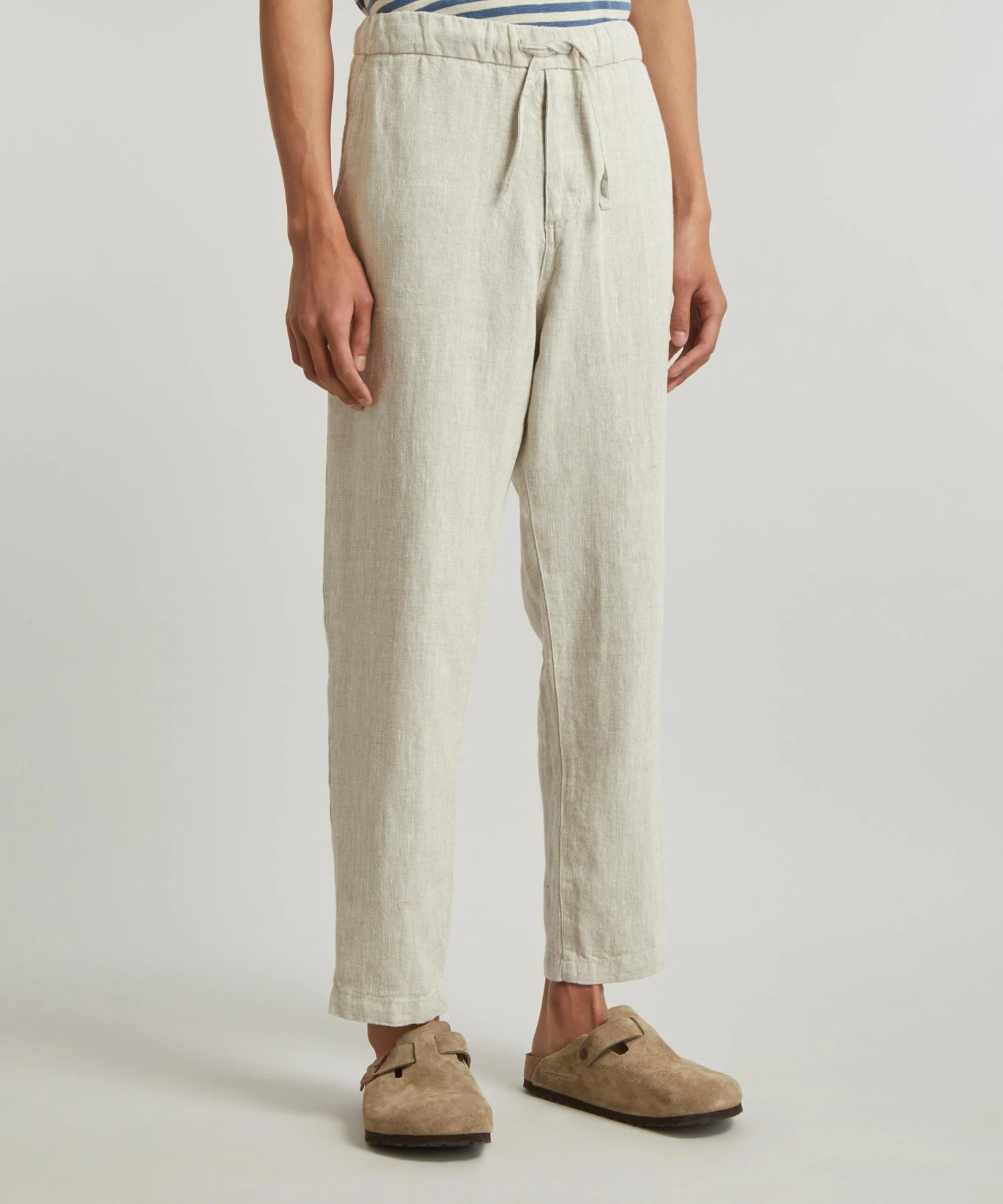 Crafted from pure linen fabric for a workwear-inspired, tapered silhouette, this easy-going style features an elasticated drawstring waistband for a ultimate comfort and ease.