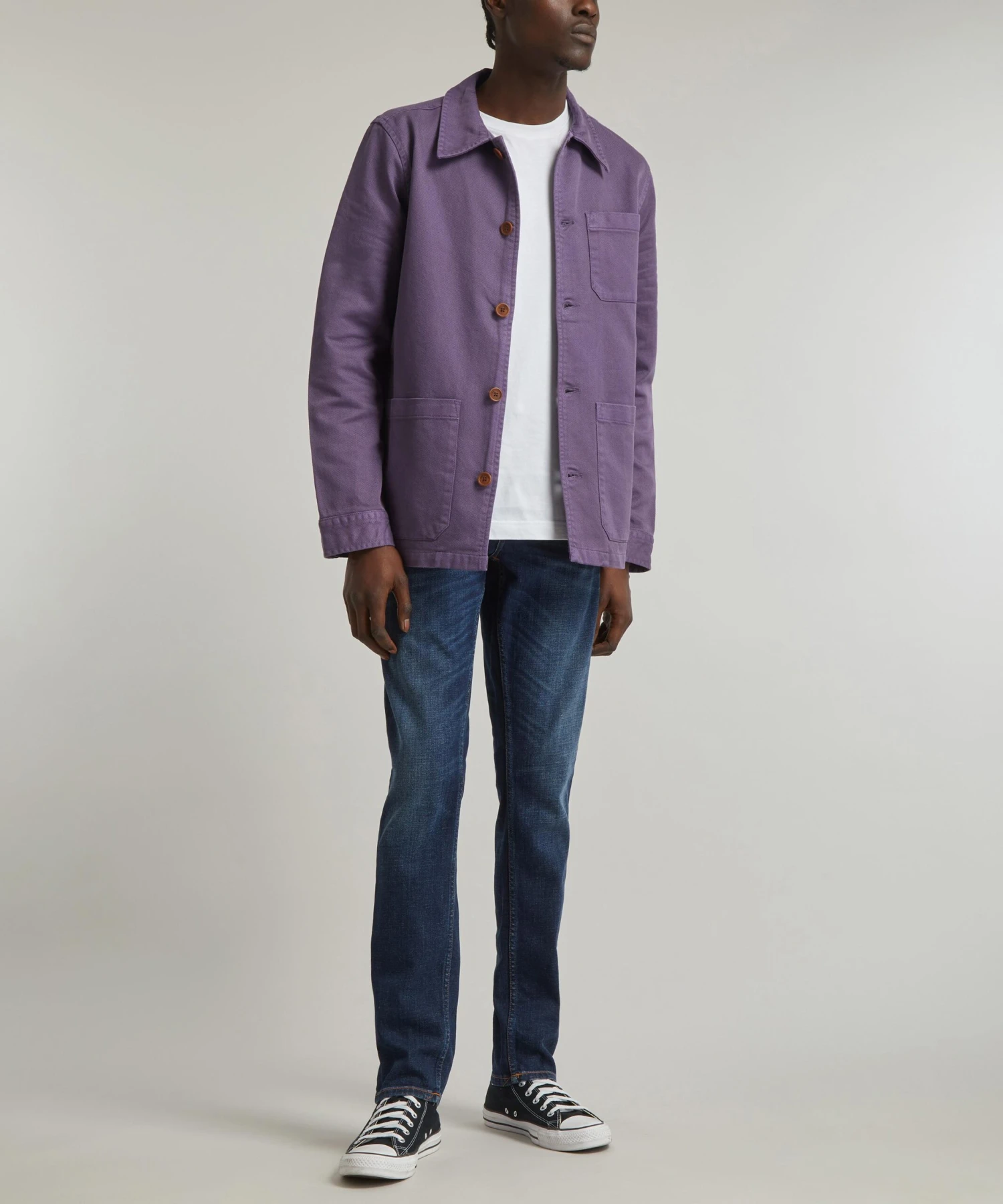 Infuse your everyday edit with a dose of vintage-inspired denim with Nudie Jeans’ Barney Work jacket – a colour-popping, retro-twist on a wardrobe staple. Crafted from a punchy-purple supple fabric, it features all the essential details of a classic worker jacket with its point collar, buttoned cuffs and three patch-pockets.