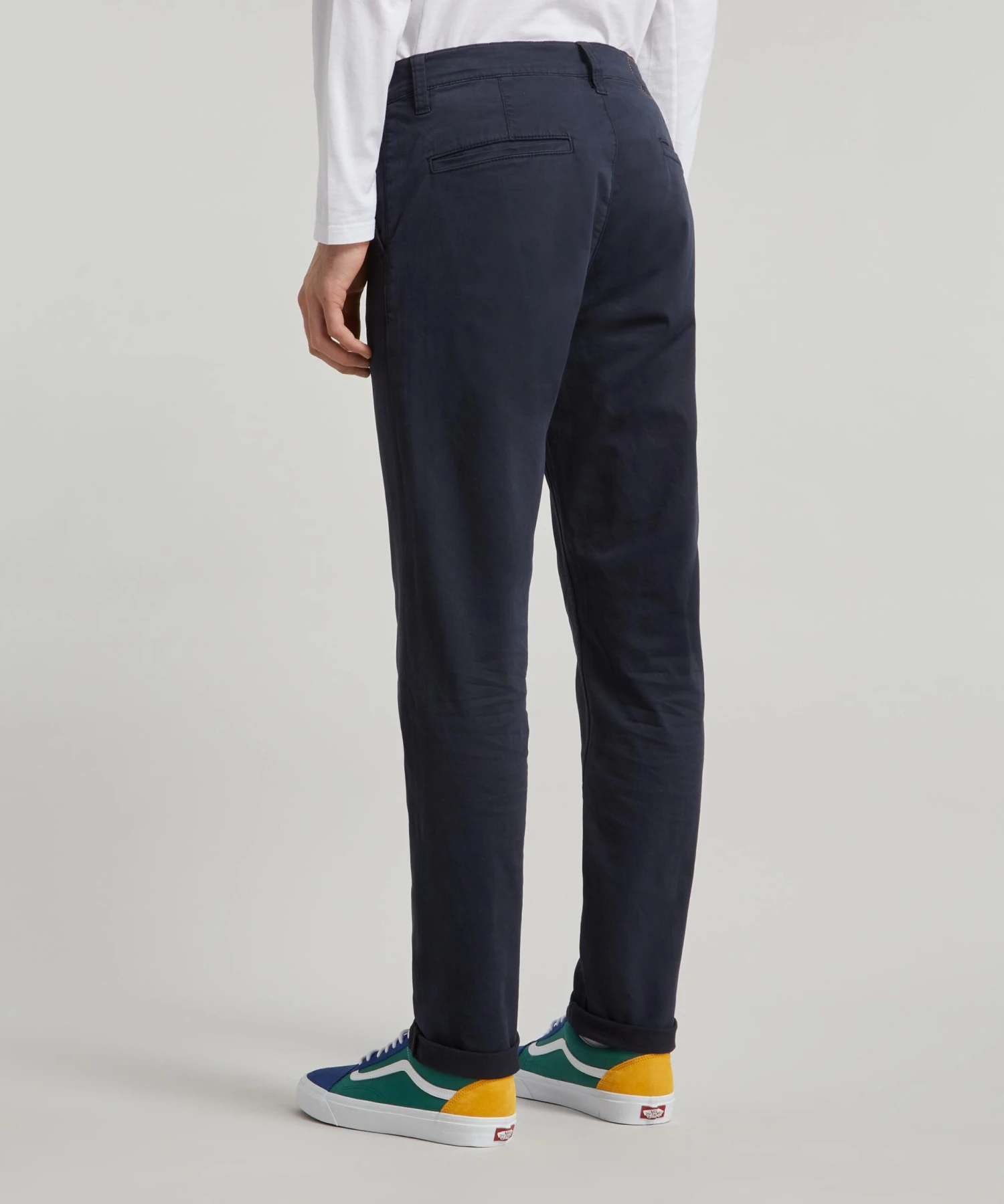 Crafted from organic cotton twill with a comfortable stretch fit, these chinos are the perfect combination of style and versatility for the modern gentleman. Boasting slanted front pockets, welt back pockets and a slim tapered leg, they’re a contemporary classic. Pair with layered tops and box-fresh trainers.