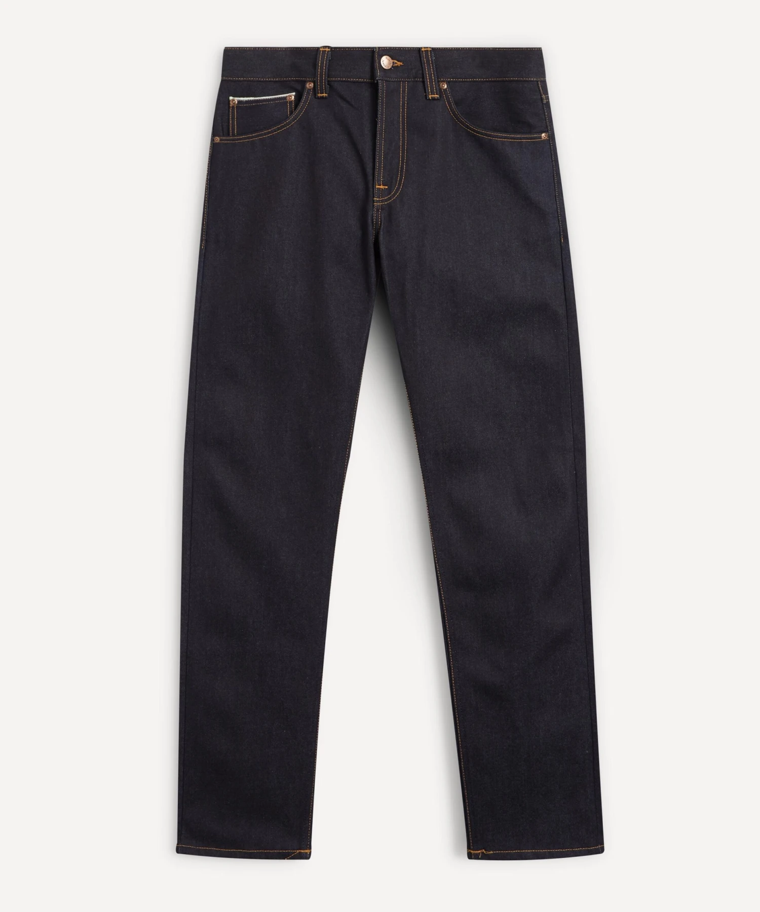 Expertly crafted using a premium organic cotton composition, these jeans employ Turkish rigid selvage denim and deep indigo colourway that will compliment an array of accompanying hues. The mid-rise waist enables effortless styling options, while the copper trims inject a further touch of detail. Create a modish attire by partnering with a crisp white crewneck t-shirt, a brown corduroy jacket and some black leather Chelsea boots.