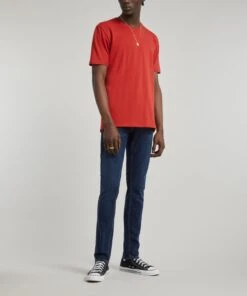 Swedish denim innovators Nudie Jeans are passionate about creating jeans that don’t cost the earth. Made from organic cotton with a slight stretch, the Lean Dean style is cut in a fit that tapers evenly from the hip to the ankle. Overdyed in a classic mid-blue, these jeans are a versatile addition to your everyday edit. We love them simply paired with a basic red t-shirt and Converse trainers for the ultimate cool-casual look.