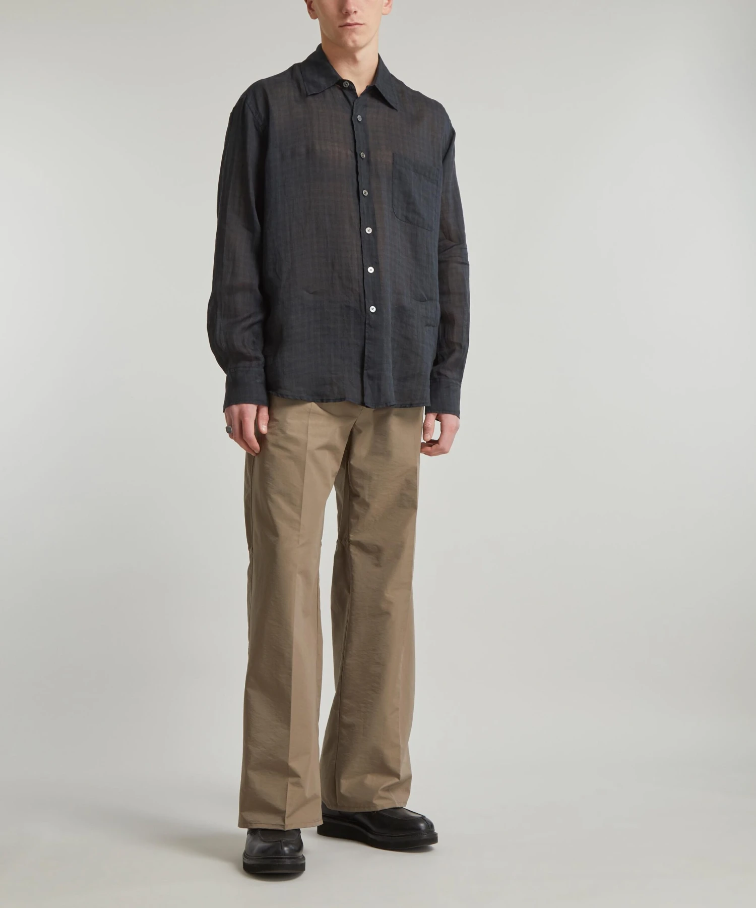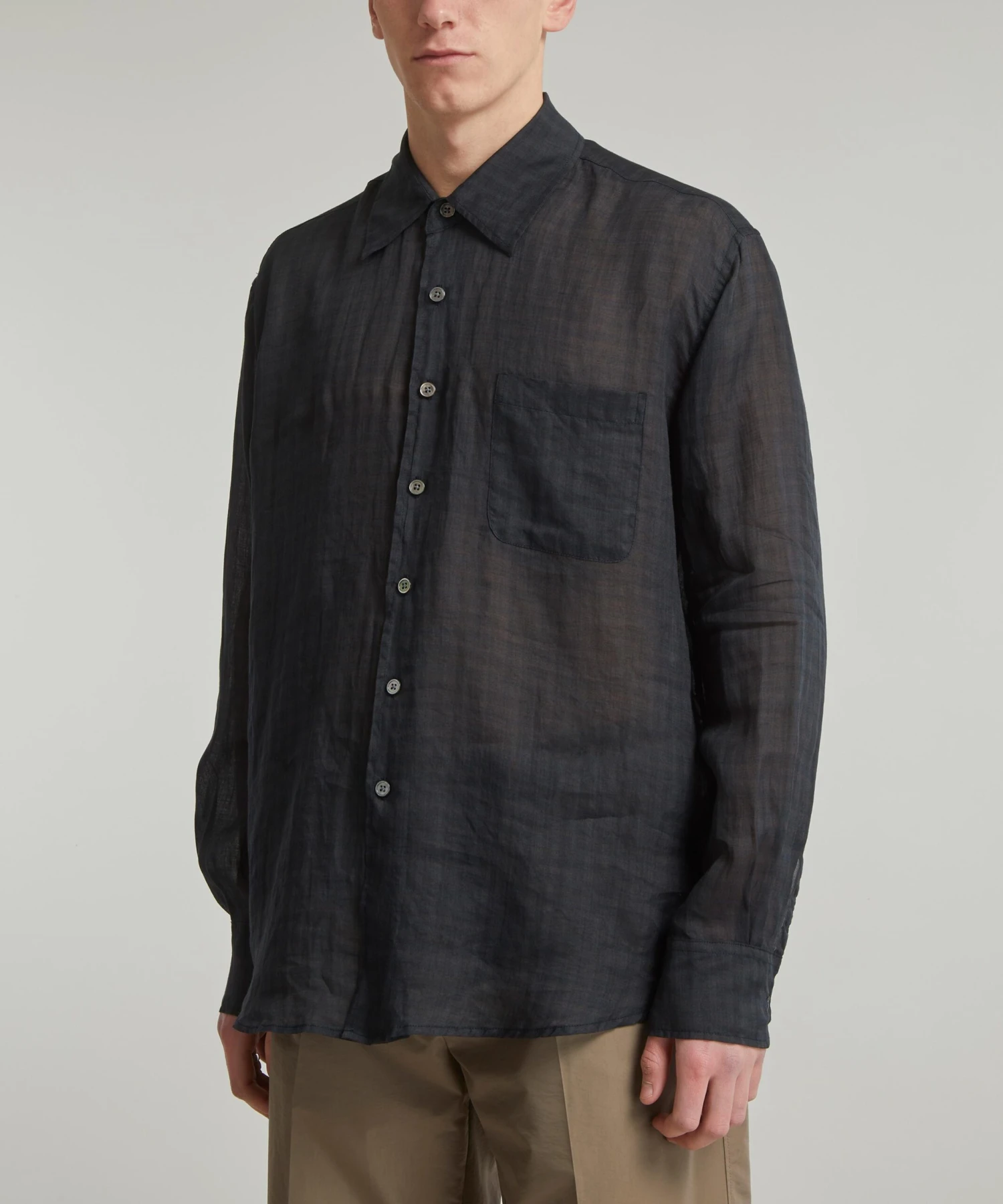 The Above shirt from Our Legacy demonstrates the Scandinavian label’s irreverent spirit. Cut from premium Italian ramie fabric, this sheer check shirt is designed for a slightly oversized fit with dropped shoulders, a single chest patch-pocket and mother-of-pearl buttons embossed across its placket.