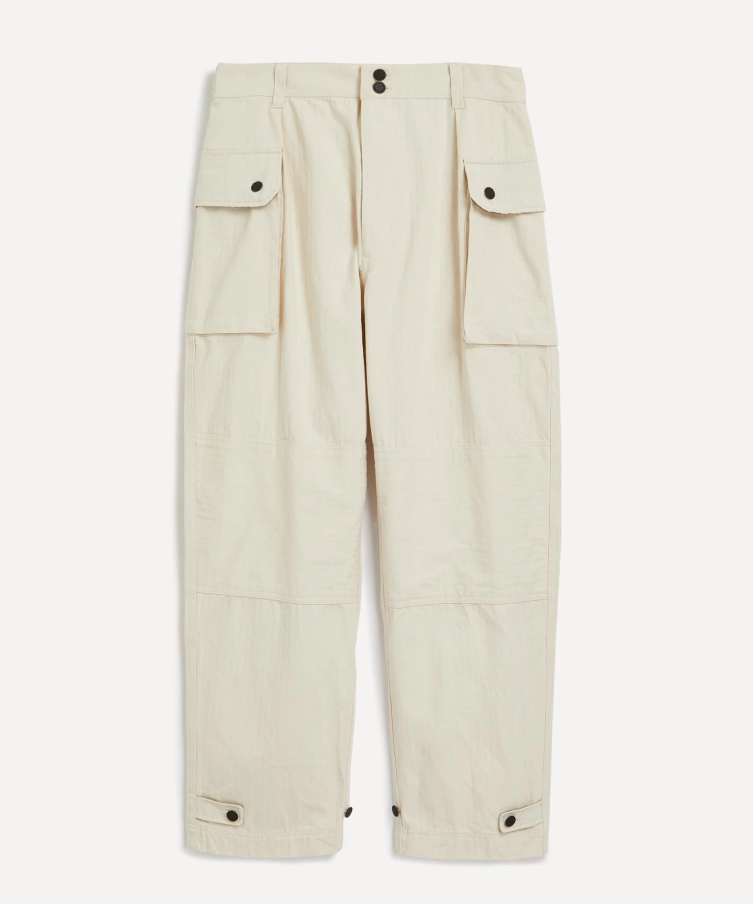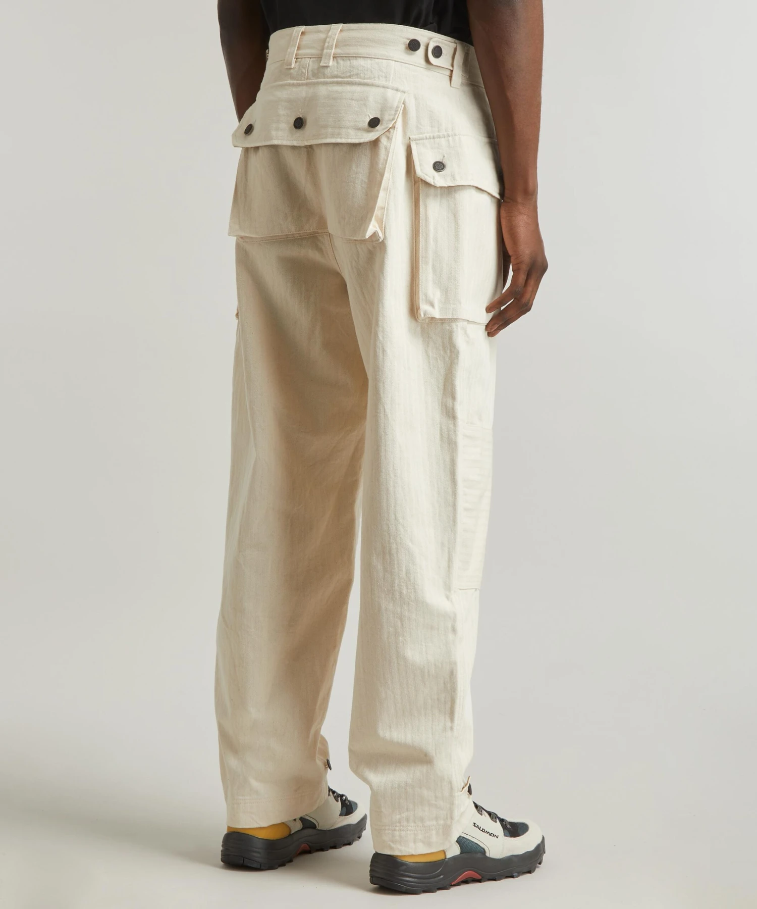 A contemporary take on classic cargo styles inspired by the U.S Marine Corps, this pair is constructed from a longwearing and lightweight 20-thread herringbone twill cotton fabric. Designed for a relaxed fit with adjustable buttoned tabs at the waist and cuffs, they’re fitted with multiple flap-pockets at the front and rear for an authentic utilitarian finish.