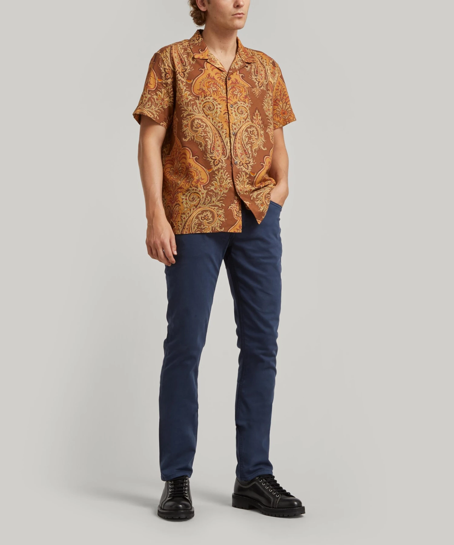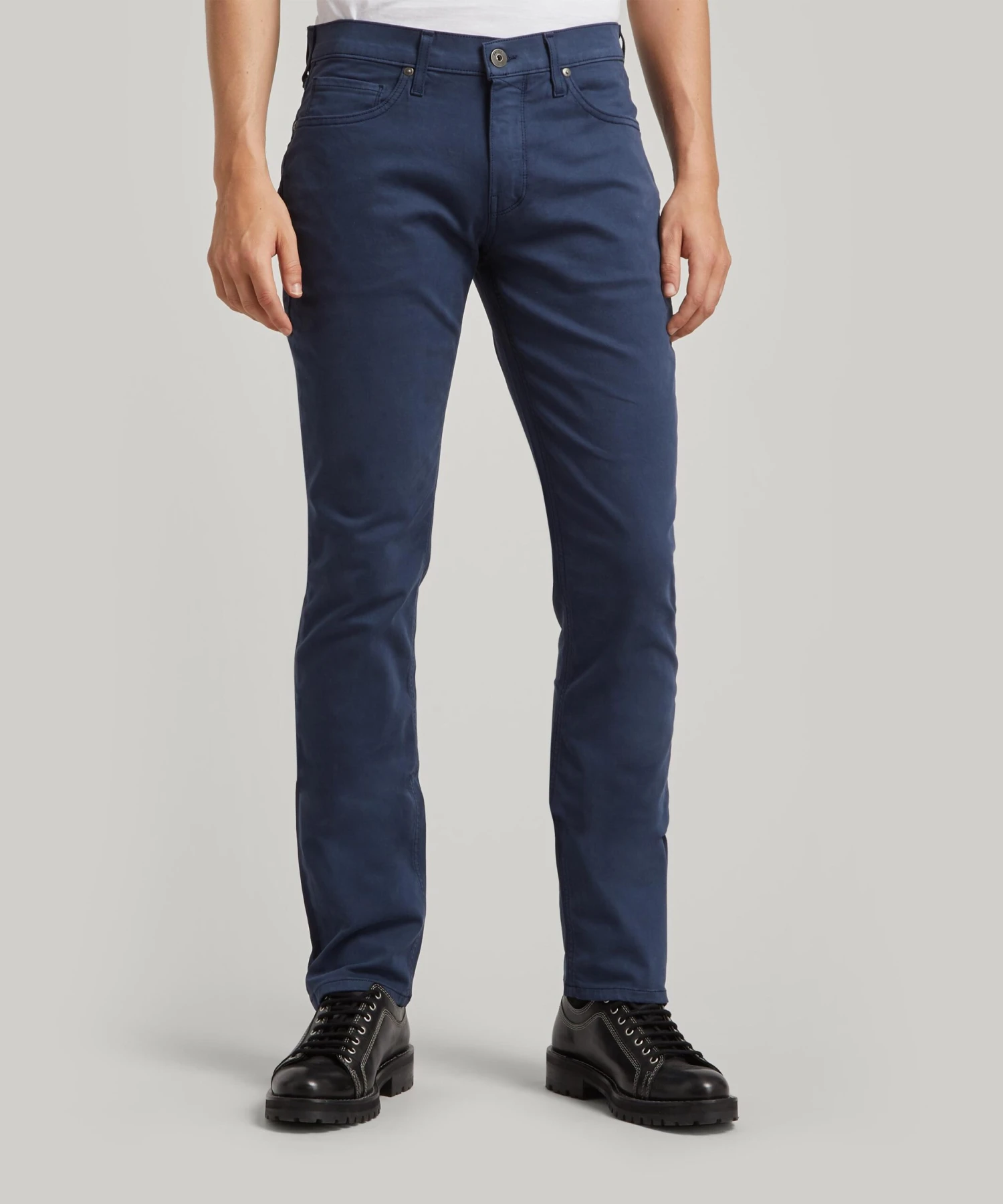 Crafted from Paige’s ECO-EVOLUTION fibre – a recycled cotton mix – these jeans have a soft, ultra-comfortable feel, in a slim straight silhouette. For a classic look, this pair comes in Rich Navy – a flattering brushed blue shade that’s endlessly versatile. Finished with a hidden zip fly and button closure and classic five pocket detail, style with a printed satin shirt.