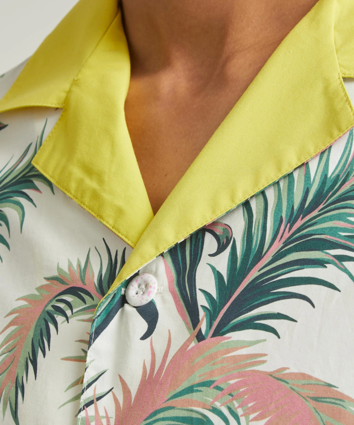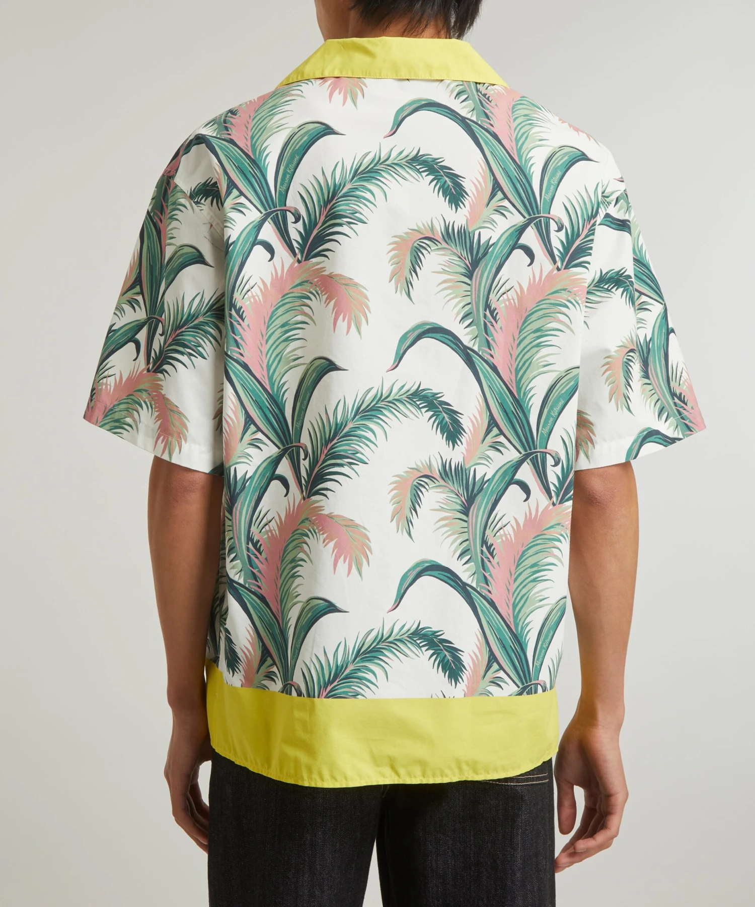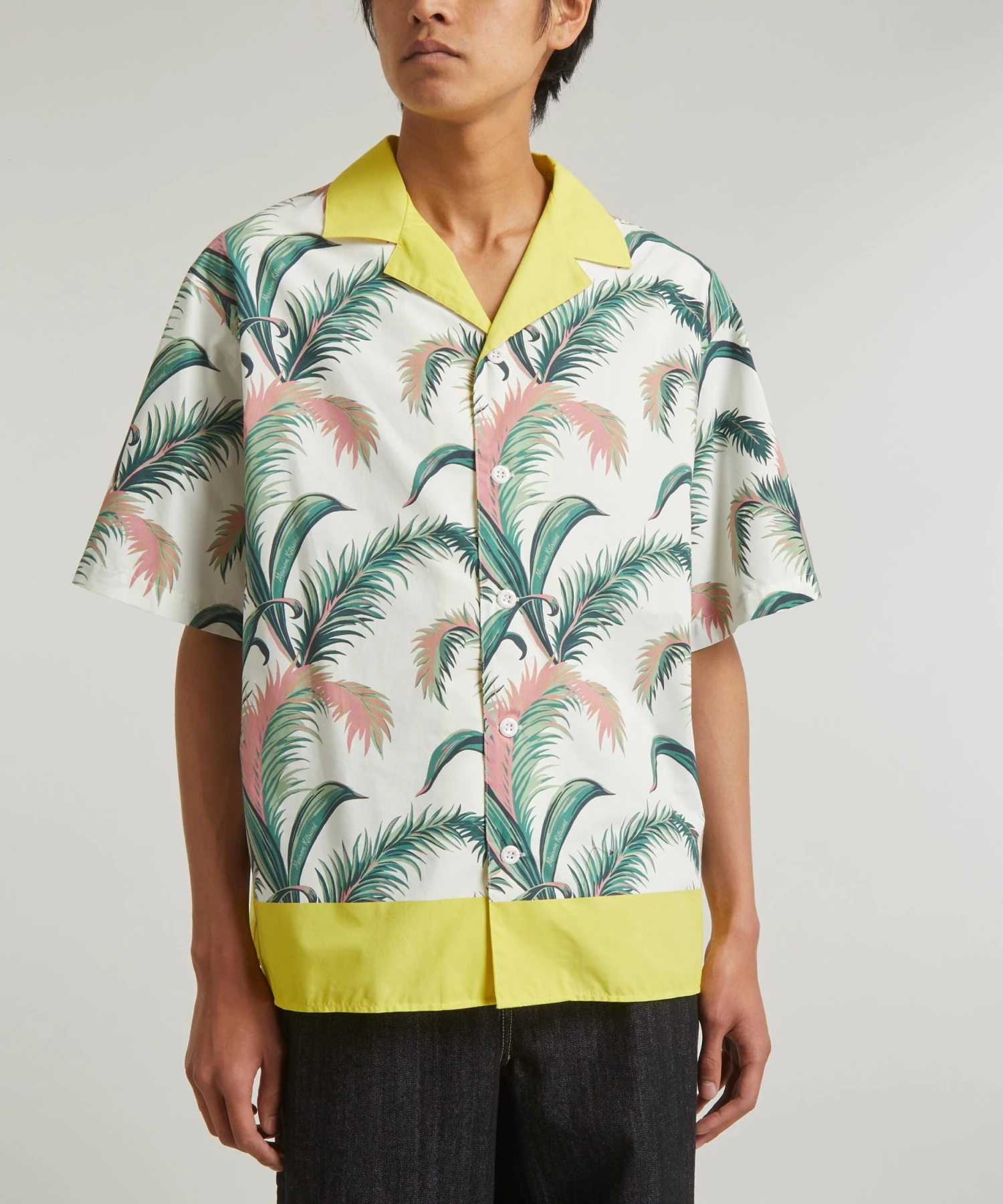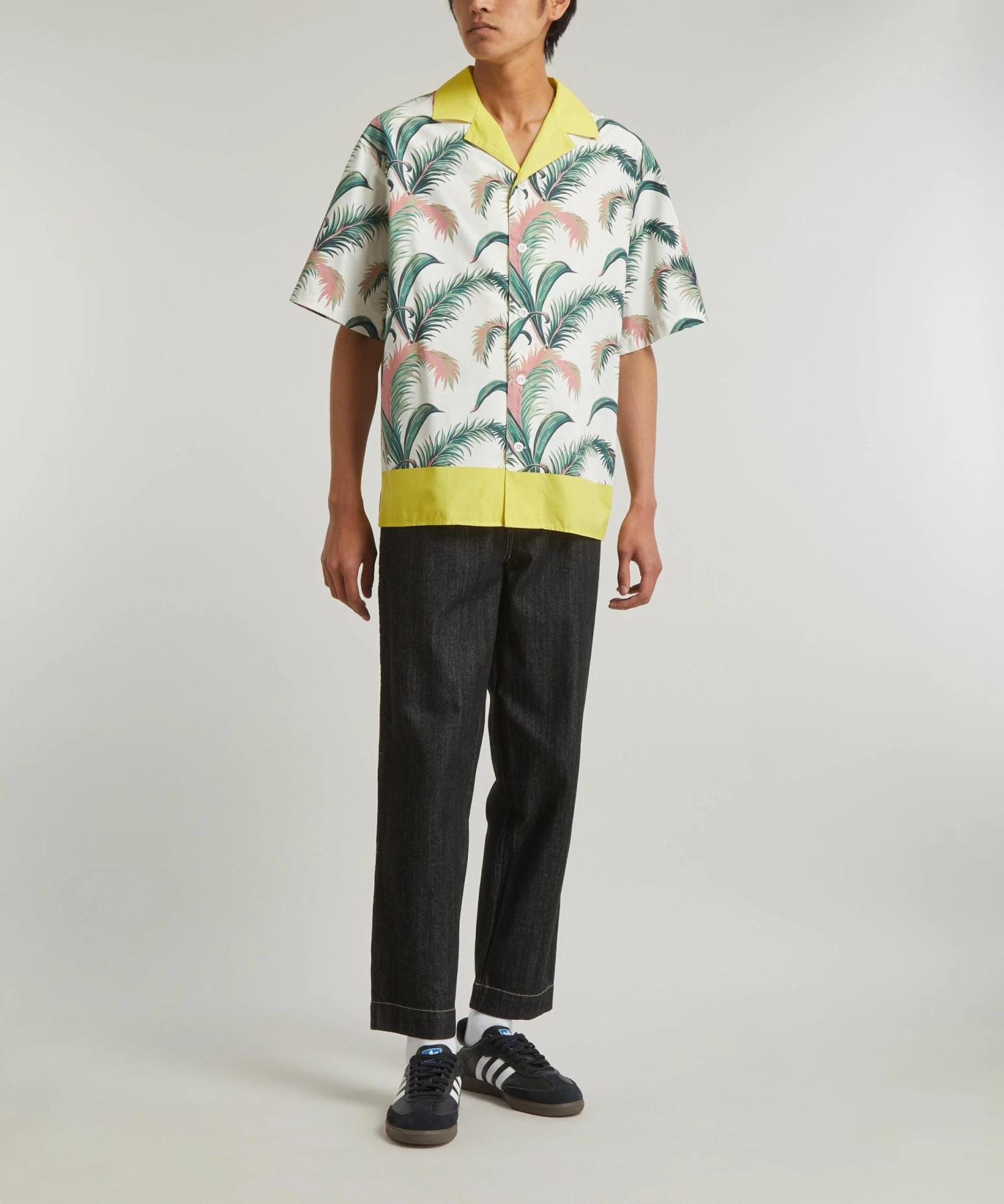 A relaxed fit with dropped shoulders and short-sleeves, this Hawaiian-style shirt is crafted from cotton featuring the summery ‘Palm Front’ print, and contrasting, lemon-yellow trims at the collar and hem.