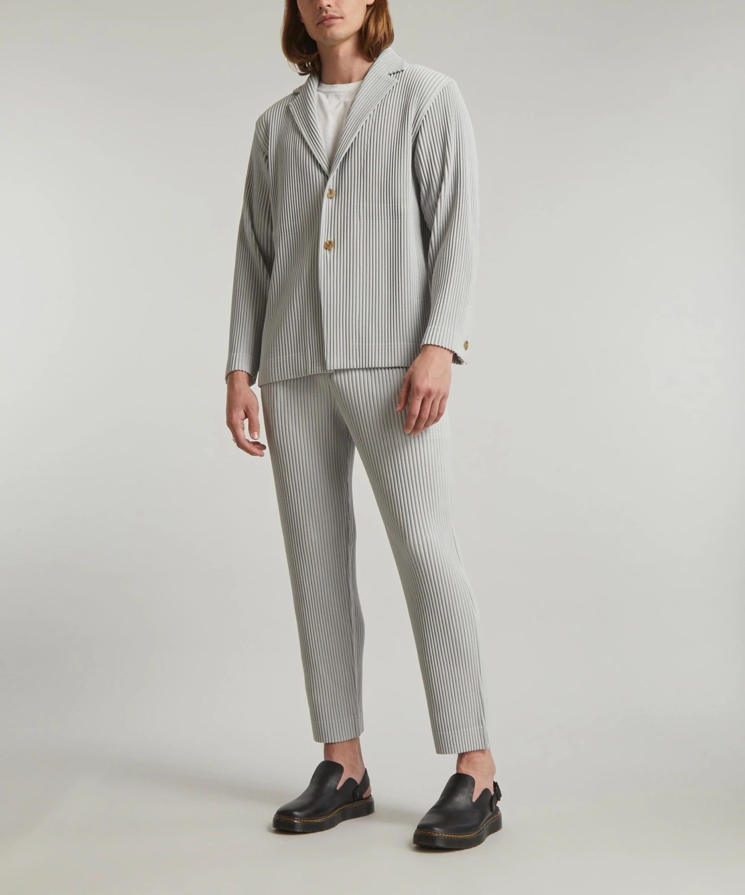 This pleated blazer from HOMME PLISSÉ showcases the radical pleating techniques the late Issey Miyake has been famed for since the eighties.