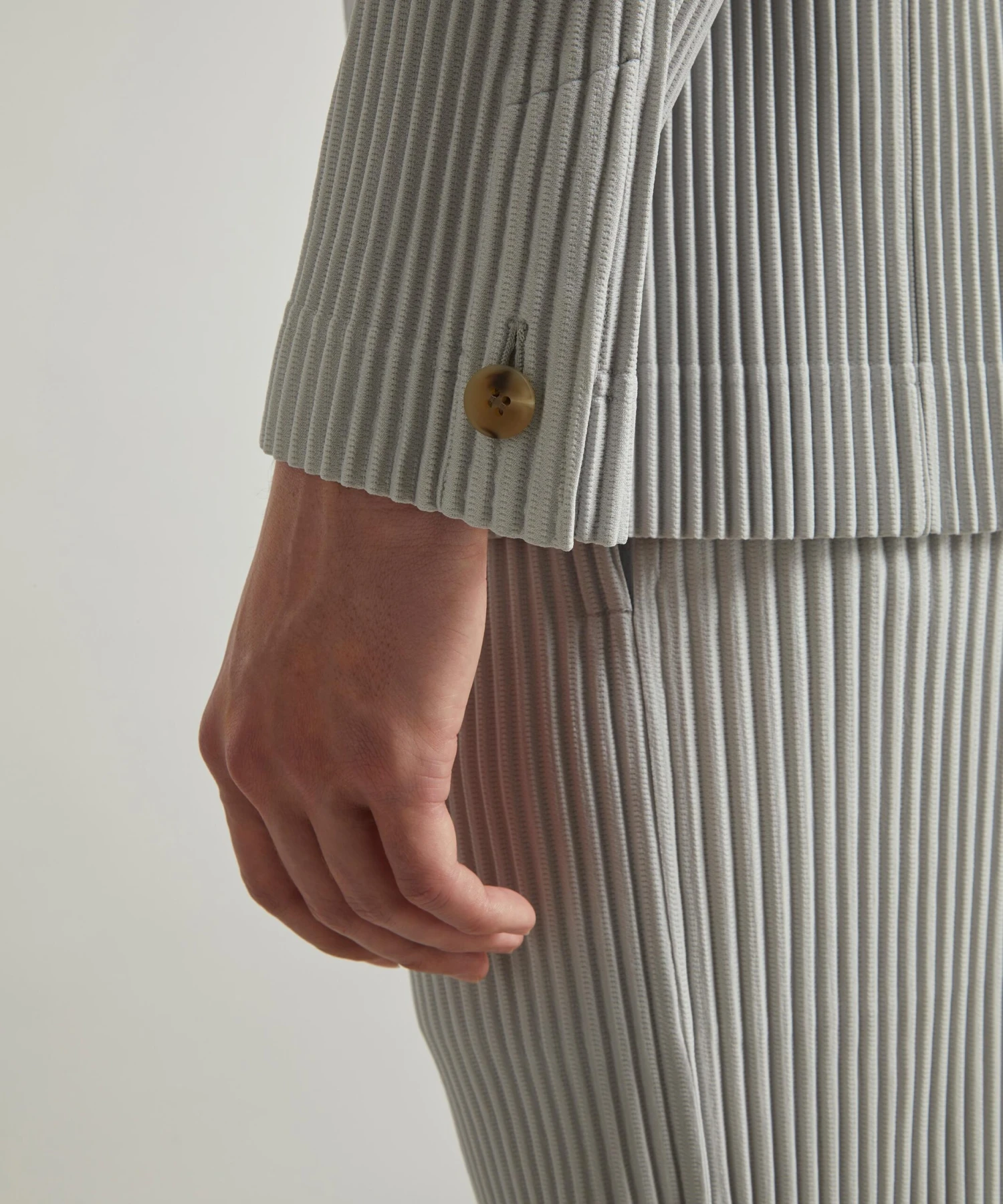 HOMME PLISSÉ uses origami-style folding to create luxurious, sporty separates. The brand takes this established technique and renders it modern with this single-breasted blazer. A shapely, relaxed fit it has classic notch lapels, dropped shoulders and long sleeves, complete with a buttoned front closure. The detailed technical weave is best highlighted when paired with matching pleated trousers.
