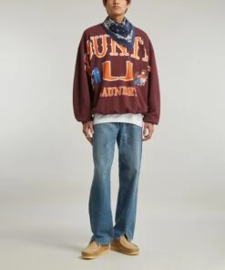 Designed with a modern, streetwear aesthetic, this Football T-shirt from cult Japanese label KAPITAL is a casual take on the classic American football jersey. Constructed from panels of cotton jersey with sporty striped shoulders and a printed squad number emblazoned across the front, it’s complete with signature ‘Smiley’ faces peeking through its ripped elbow patches.