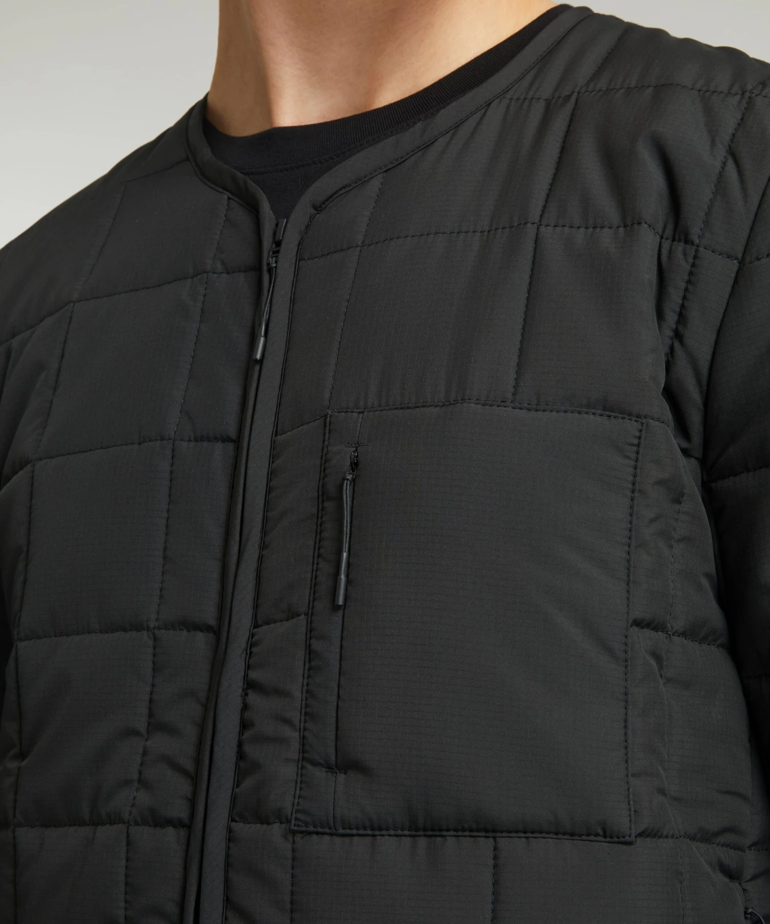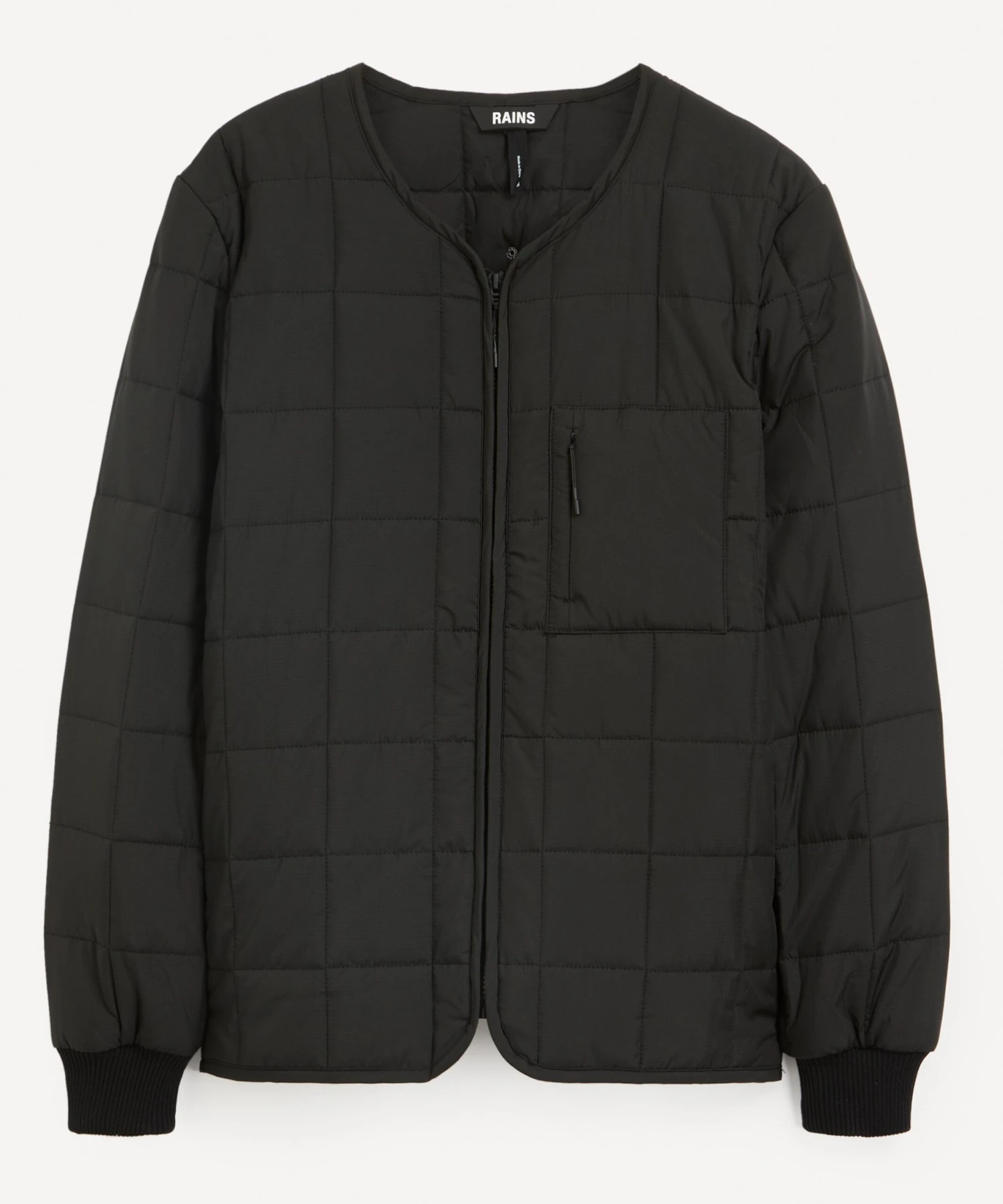 Stylish and practical, the Liner jacket from Rains neatly embodies the brand’s functional simplicity. A versatile transitional piece designed to be layered or worn as a light jacket, its water-repellent polyester ripstop exterior features an O-neck, a single chest-pocket, concealed side-pockets and grid quilting throughout.