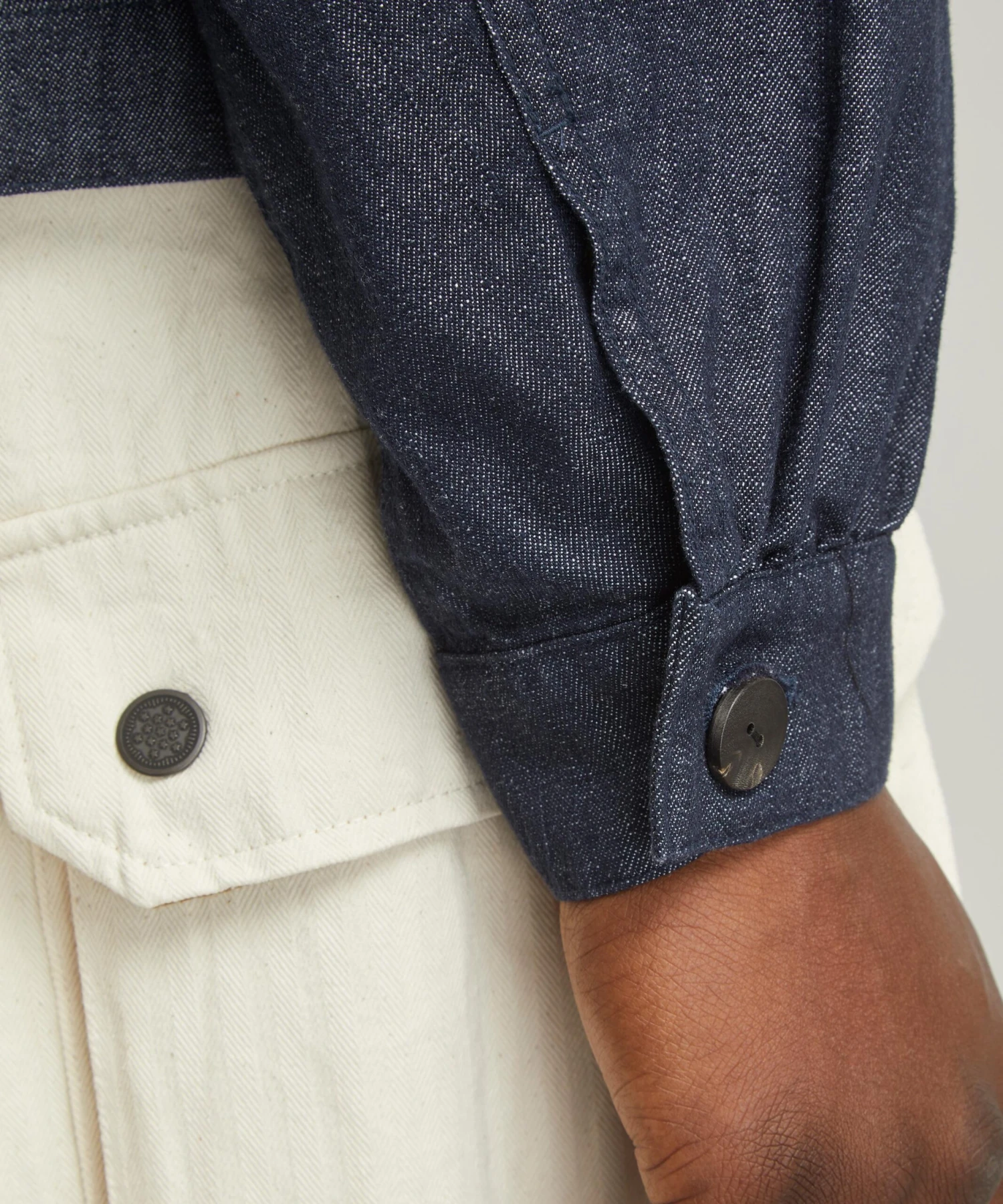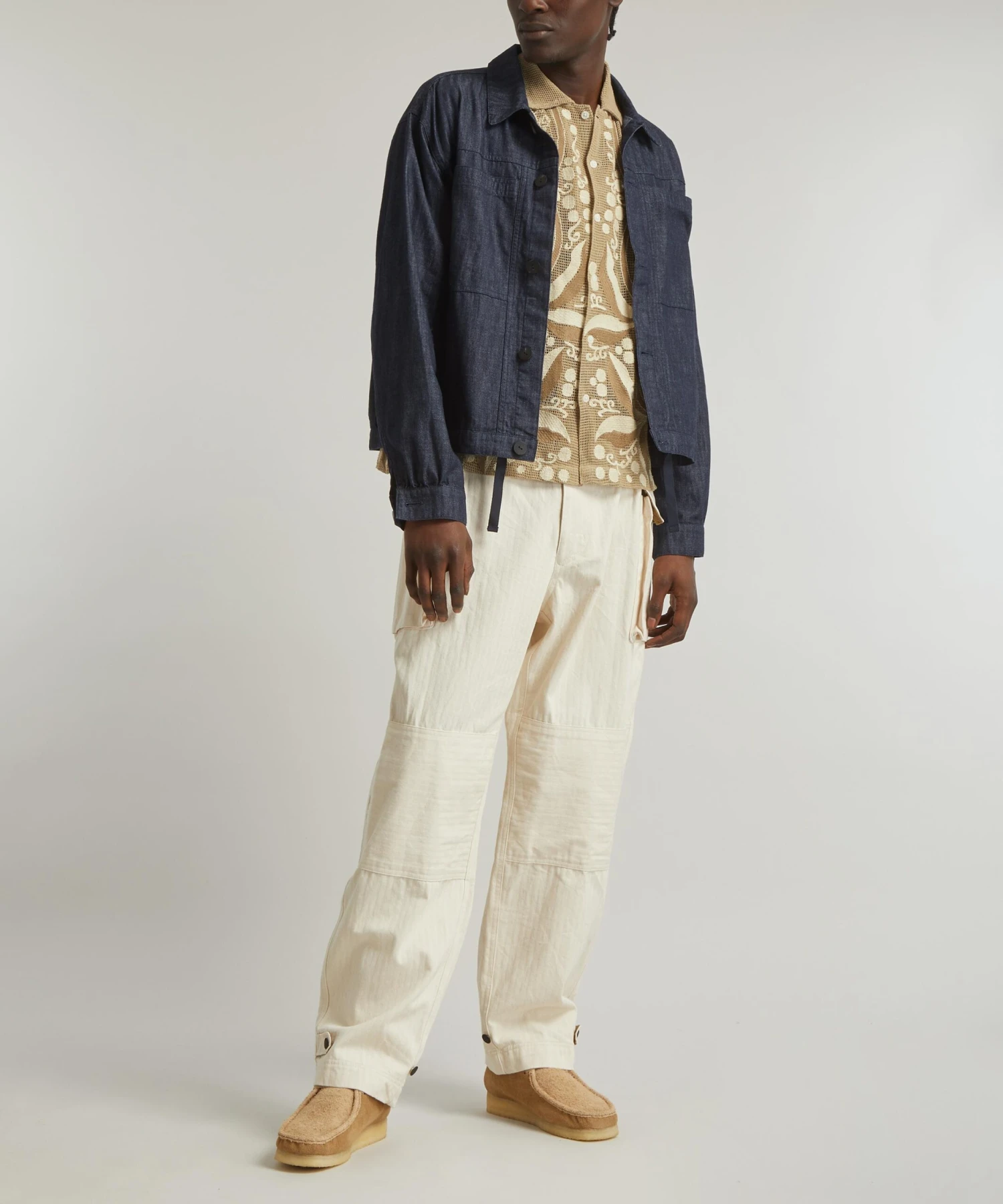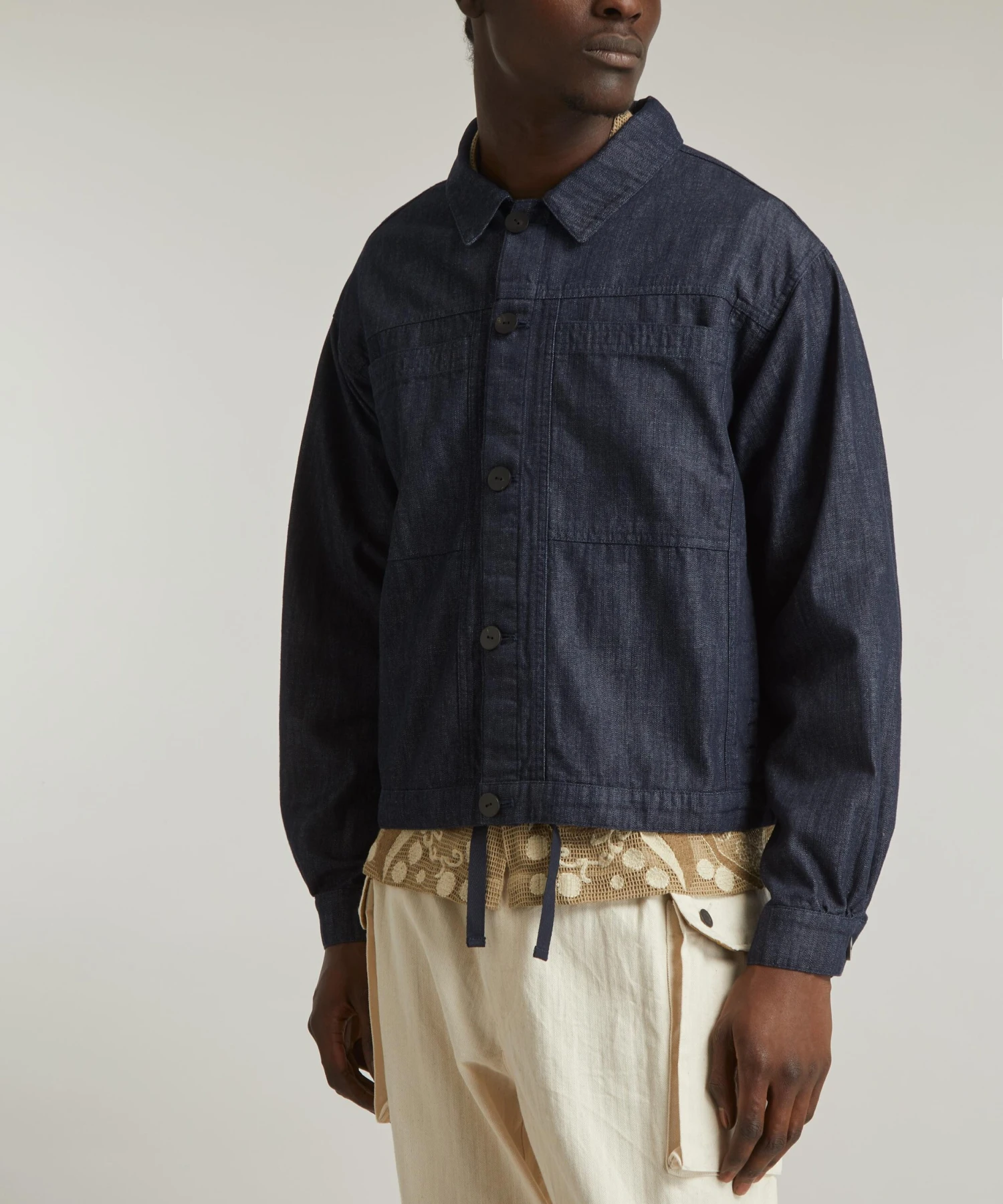 A contemporary take on classic utilitarian styles, it’s constructed from a tactile, cotton-blend indigo fabric for a relaxed fit with dropped shoulders and long cuffed-sleeves, complete with a spread collar, two chest patch-pockets and adjustable drawstring ties at the hem for an authentic, trucker-style finish.