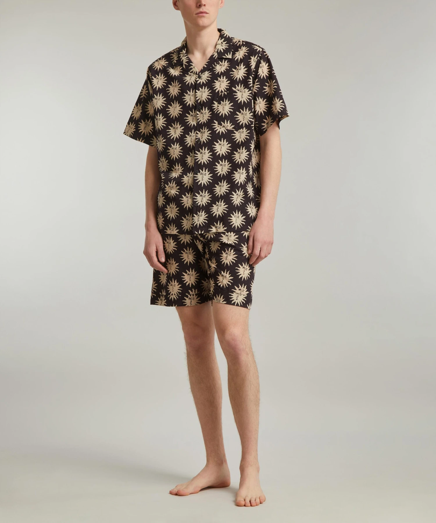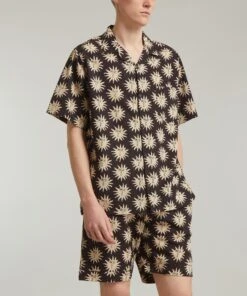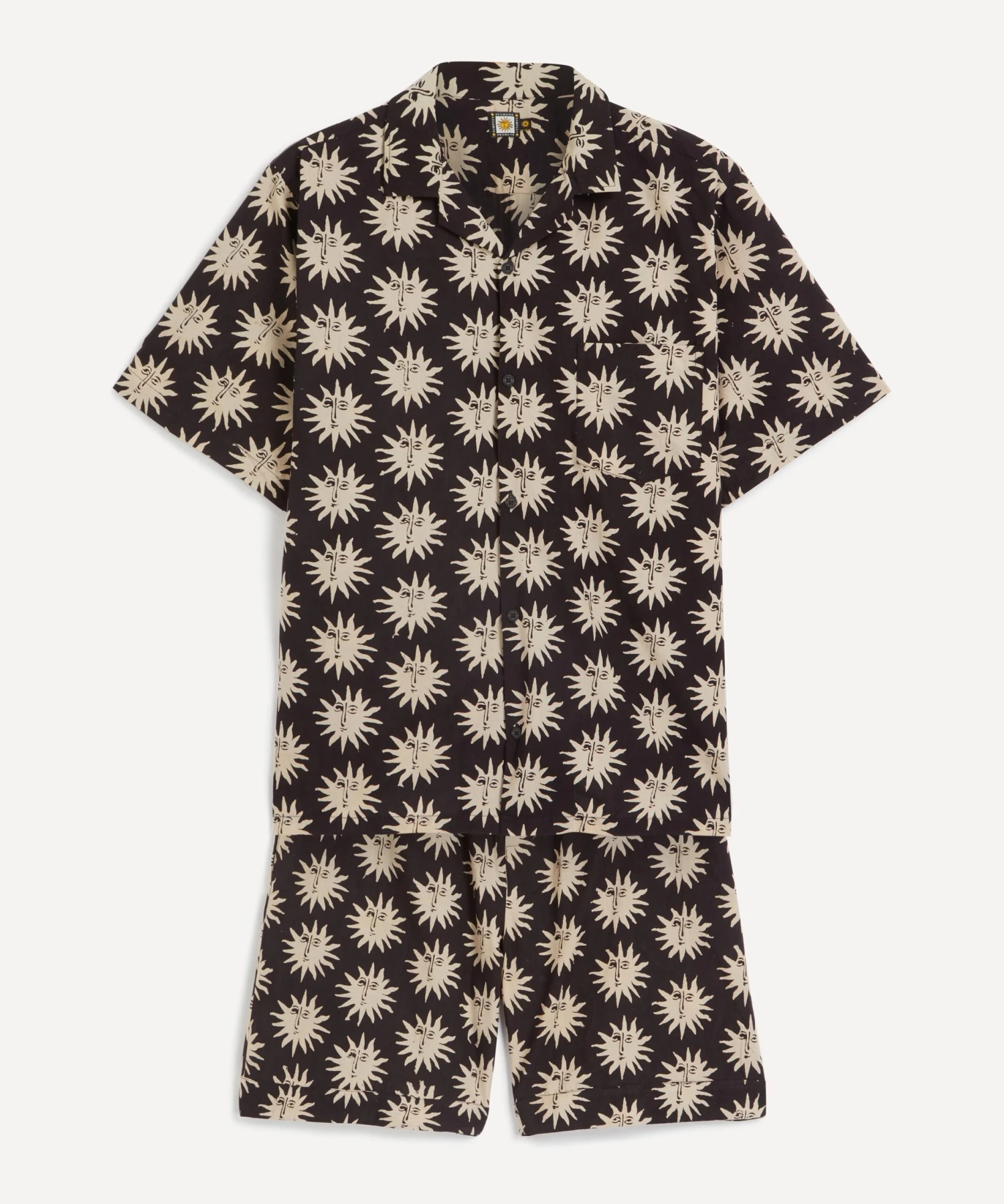 Made for hot summer nights, the Helios Linen Cuban pyjama set from Desmond & Dempsey brings a touch of luxe to your loungewear edit. Lightweight and loose, this Cuban shirt and short set is crafted from premium linen detailed with a charming sun print that has been designed in collaboration with the Indian collective, Ōshadi.