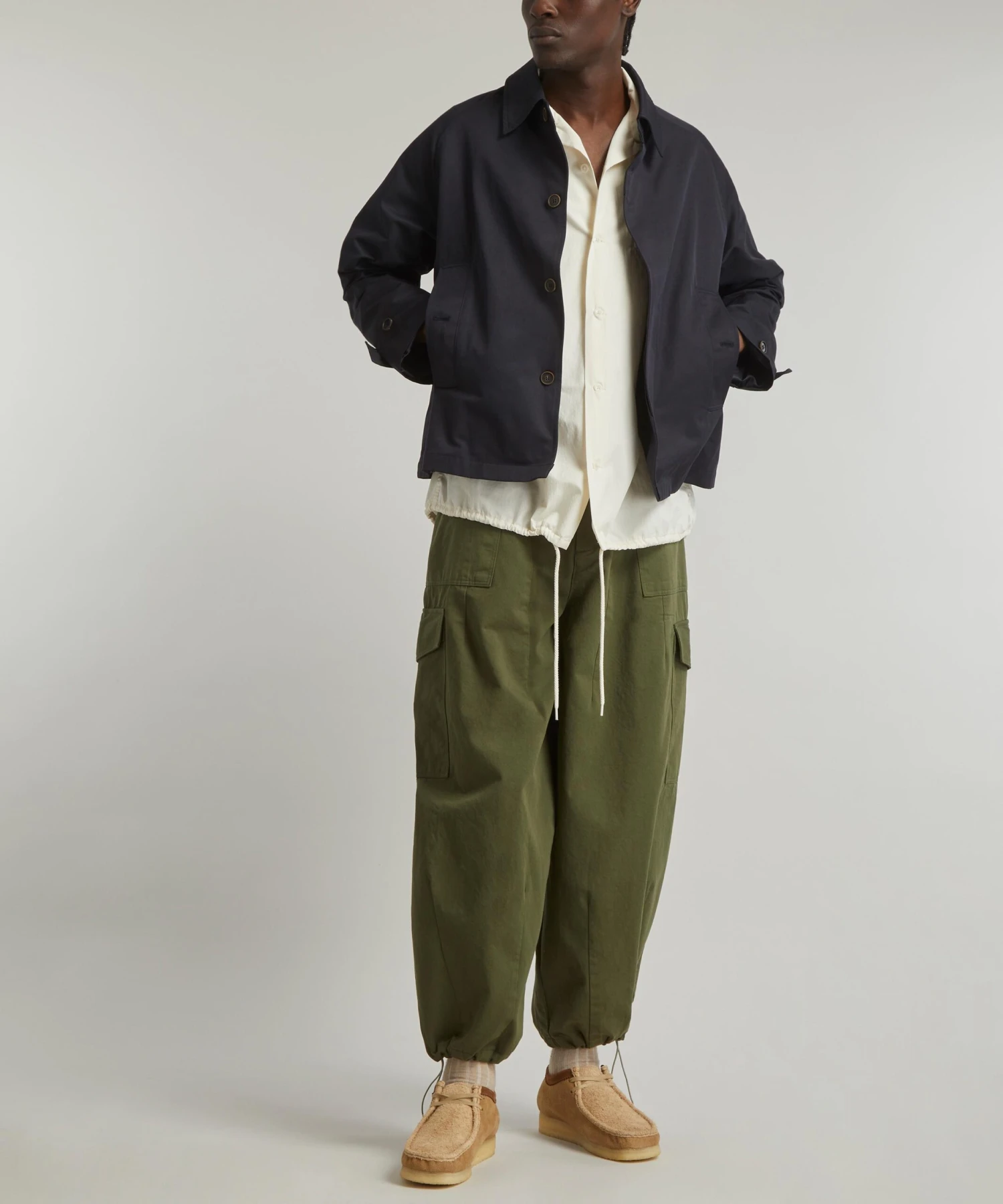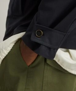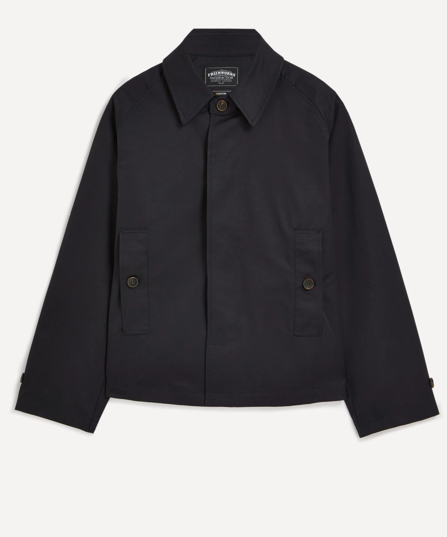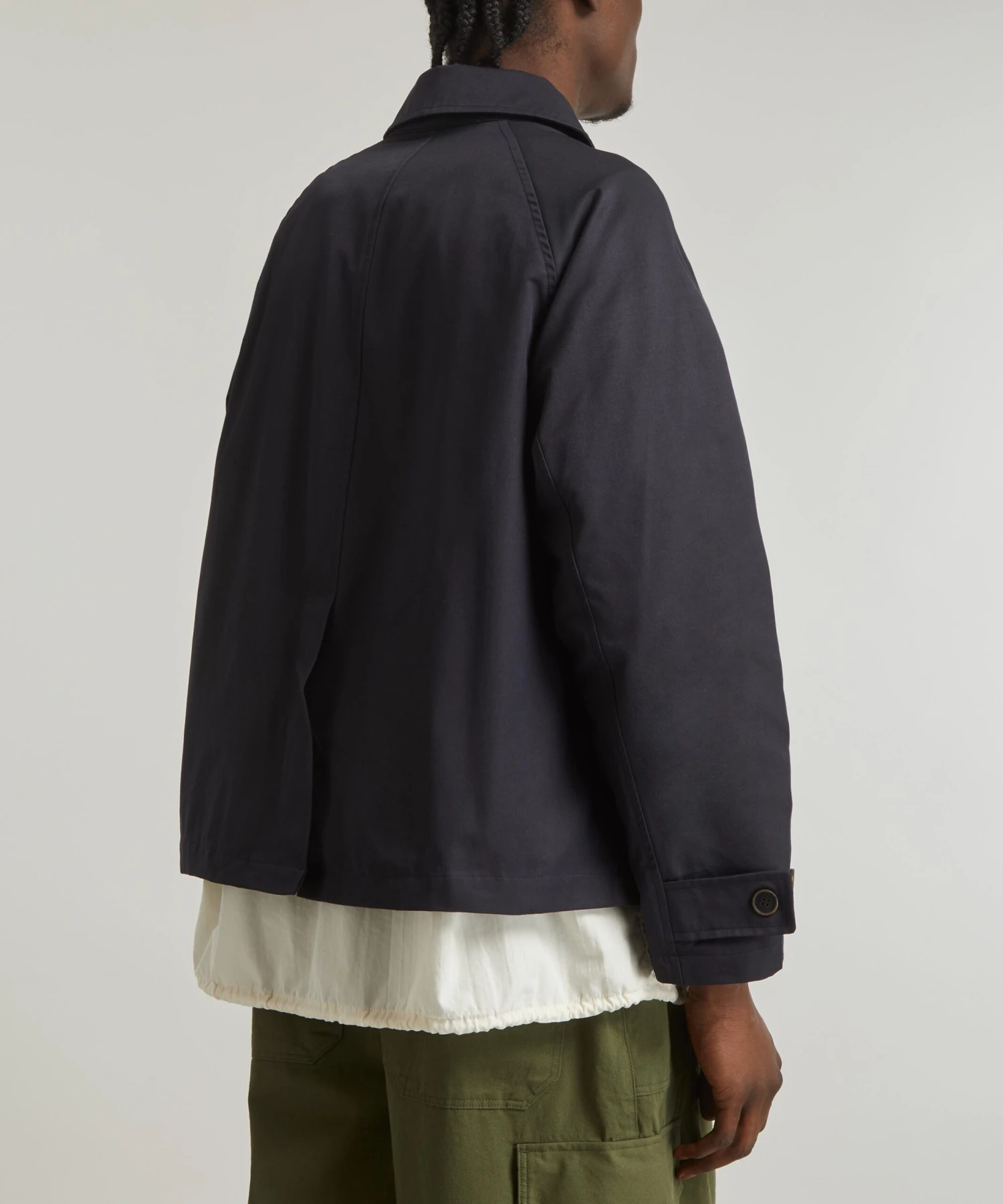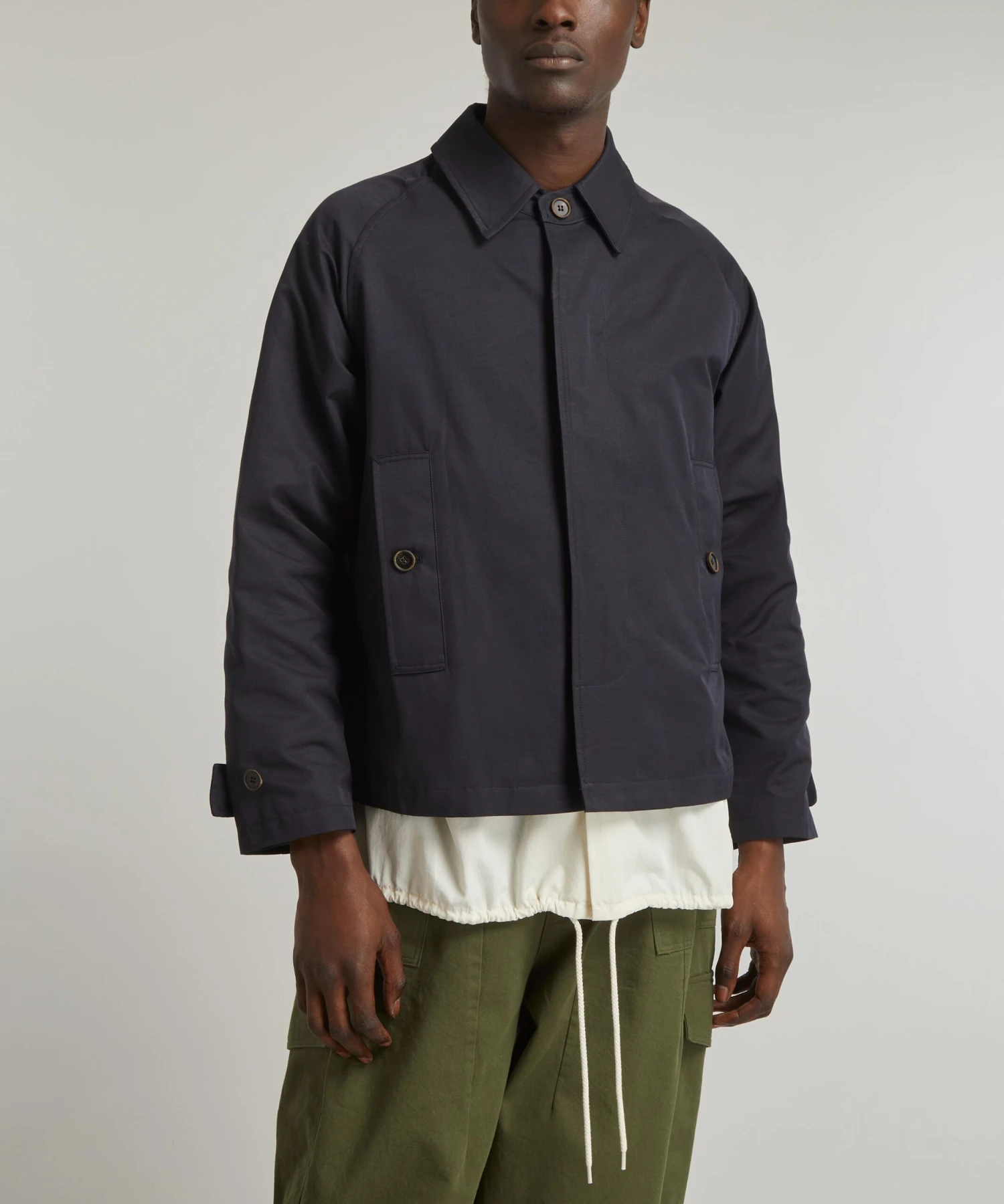 A contemporary take on the classic Balmacaan coat, it’s constructed from solar twill fabric for a short-length silhouette featuring relaxed sleeves with cropped, buttoned cuffs. Finished with a point collar, concealed buttoned placket and vertical welt-pockets, it brings an effortless touch of sophistication to your everyday outwear edit.
